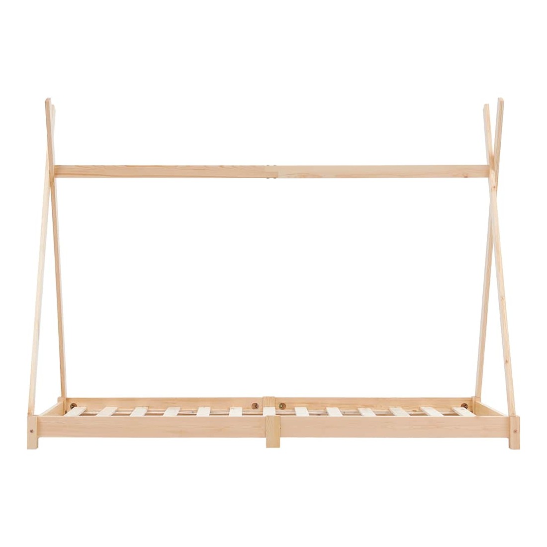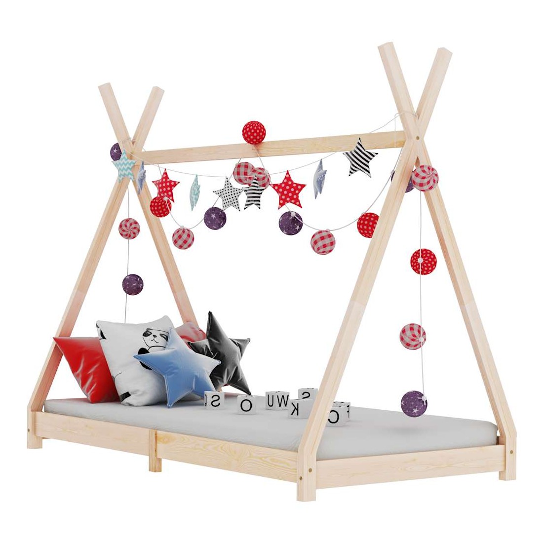 Créez le refuge ultime dans la chambre de vos enfants avec notre cadre de lit fantastique ! Le lit présente un cadre croisé innovant inspiré des tentes de style tipi cool où vous pouvez accrocher des rideaux de lit pour créer de l'intimité pour votre enfant. Il peut également être utilisé comme coin lecture ou maison de jeu pour votre enfant. Fabriqué en bois de pin massif, ce cadre de lit est extrêmement robuste et durable. Les lattes résistantes offrent le soutien nécessaire et sont très confortables. Ce cadre de lit convient à un matelas de 80 x 160 cm. Veuillez noter que la livraison inclut un cadre de lit seulement ; un matelas et les rideaux ne sont pas inclus. Le lit est facile à assembler. Vous pouvez chercher le matelas correspondant dans notre boutique.