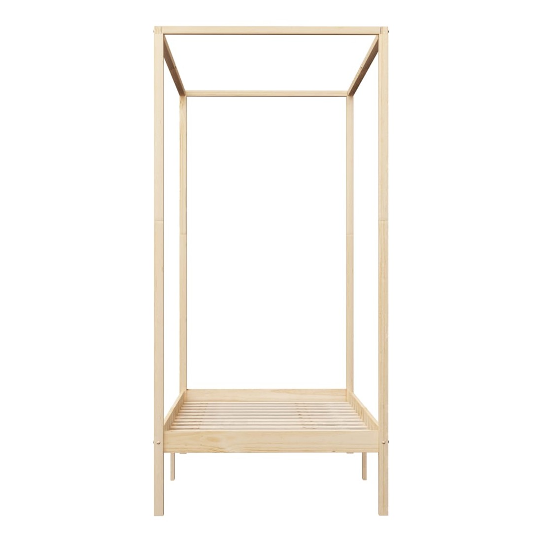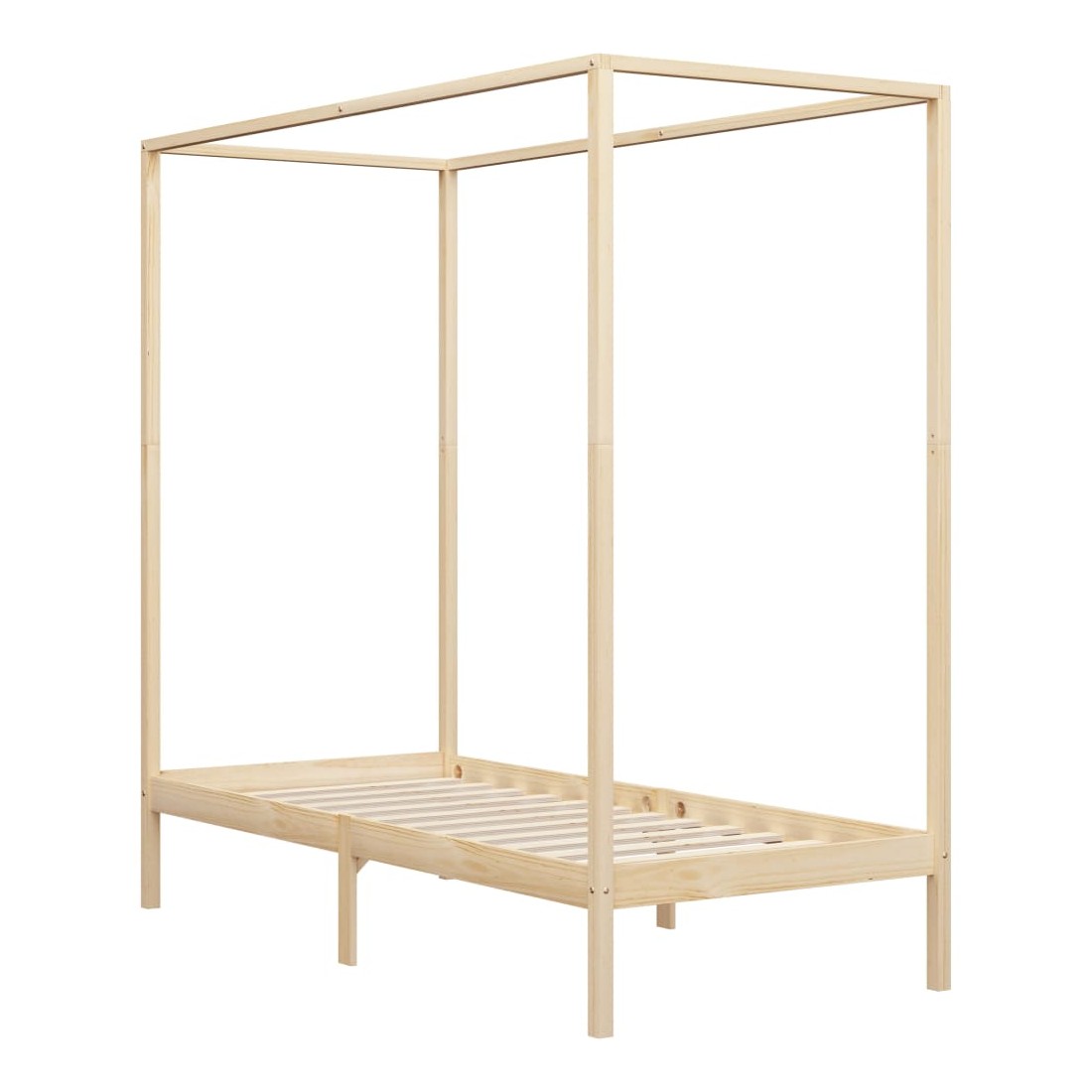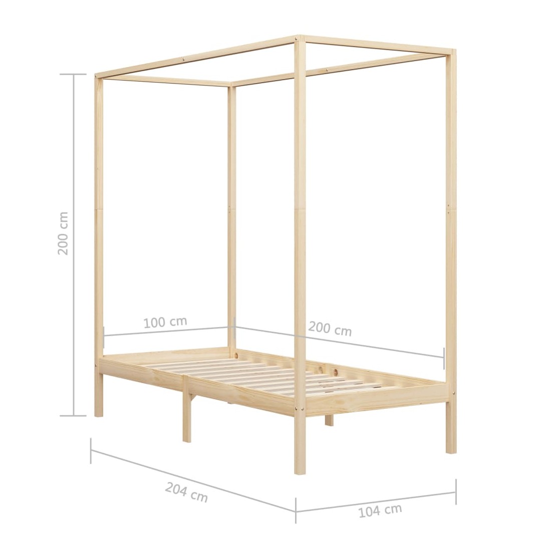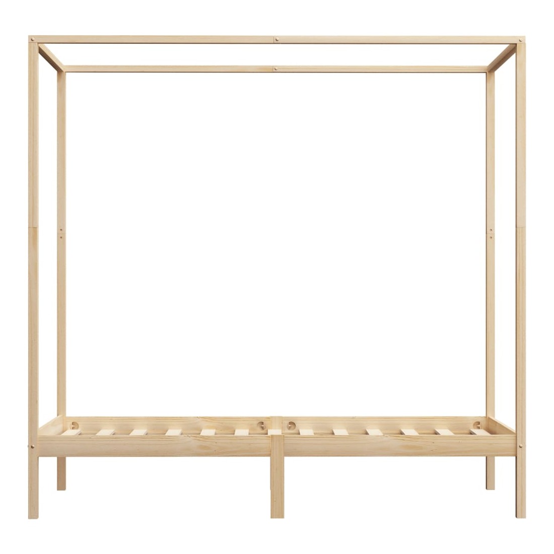Donnez une touche d'élégance à votre chambre à coucher avec notre cadre de lit à baldaquin en bois massif intemporel ! Le lit est intelligemment conçu avec un cadre supérieur pour accrocher vos rideaux préférés, ce qui ajoute un charme unique à votre chambre à coucher, tout en créant une intimité supplémentaire. Fabriqué en bois de pin massif, ce cadre de lit est extrêmement robuste et durable. Les lattes résistantes offrent le soutien nécessaire et sont très confortables. Ce cadre de lit convient à un matelas de 100 x 200 cm. Veuillez noter que la livraison comprend uniquement un cadre de lit, le matelas et les rideaux ne sont pas inclus. Le lit est facile à assembler. Vous pouvez consulter notre boutique pour les matelas assortis.