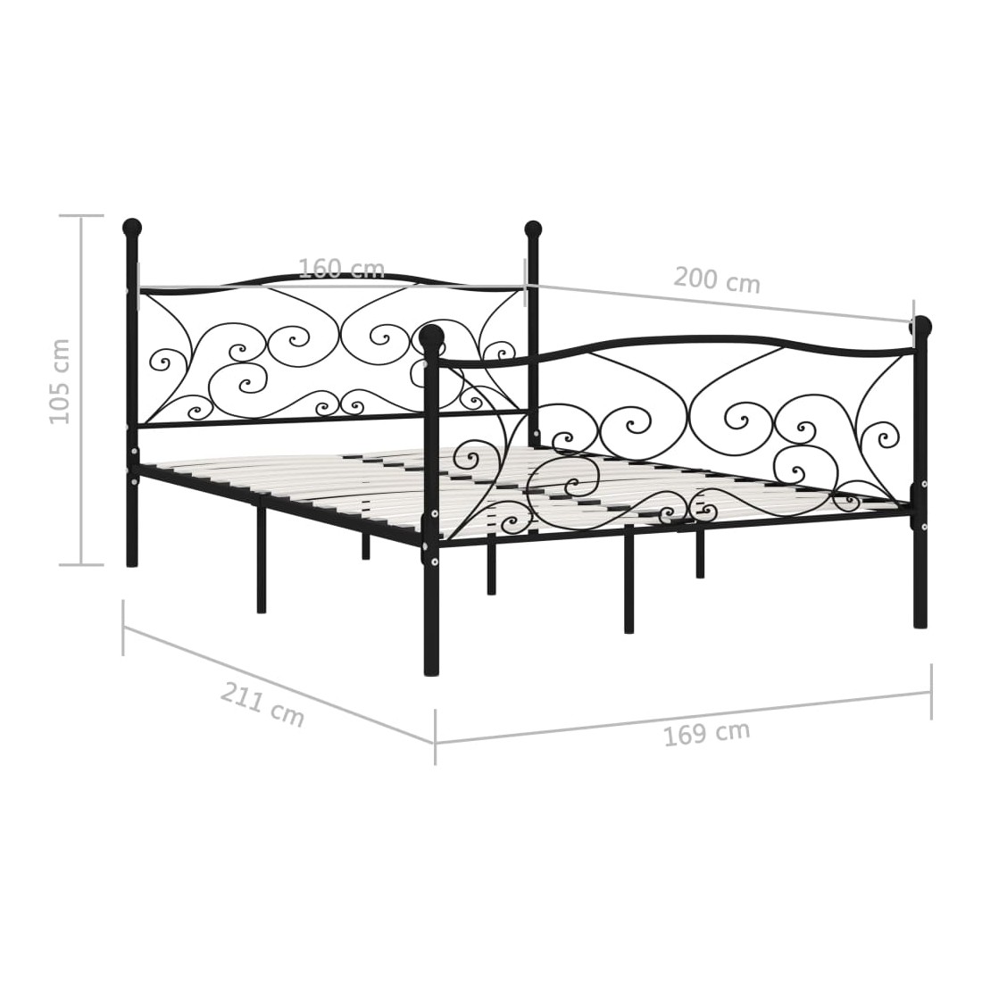 Cadre de lit et sommier à lattes Noir Métal 160 x 200 cm