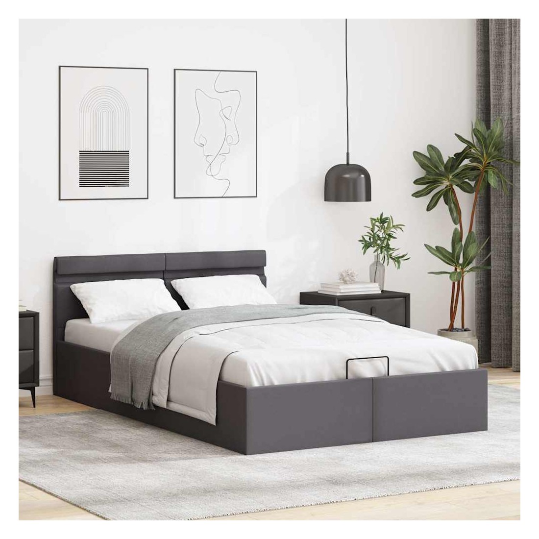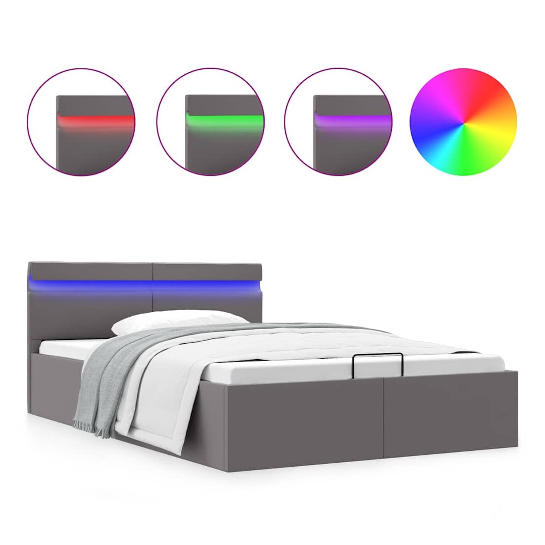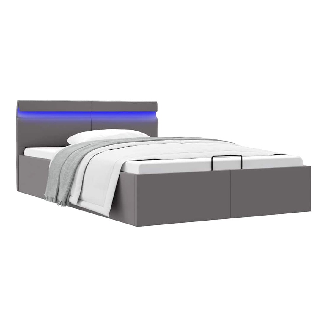 Cadre de lit à rangement hydraulique sans matelas avec LED gris
