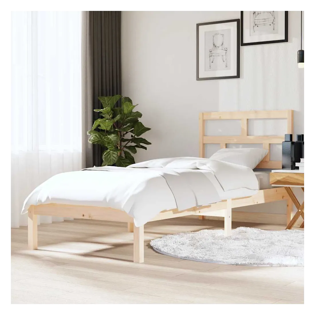 Prenez le chemin moderne vers votre chambre à coucher cool avec ce cadre de lit en bois ! Il constitue un supplément pratique et décoratif à votre intérieur. Matériau de première qualité : le bois de pin massif est un matériau naturel magnifique. Le bois de pin a un grain droit et les nœuds donnent au matériau son aspect caractéristique et rustique.Lattes robustes : les lattes de contreplaqué assurent une bonne répartition du poids, garantissant que le matelas reste en place à chaque torsion de votre corps pendant le sommeil.Tête de lit confortable : la tête de lit classique vous permet de vous reposer confortablement lorsque vous lisez ou regardez un film. Bon à savoir :La livraison comprend uniquement un cadre de lit. Le matelas n'est pas inclus. Vous pouvez consulter notre boutique pour trouver les matelas assortis.Certaines pièces de tête de lit sont emballées dans les cartons du cadre de lit en raison du manque d’espace.Ce cadre de lit convient à un matelas mesurant 75 x 190 cm (petit simple).