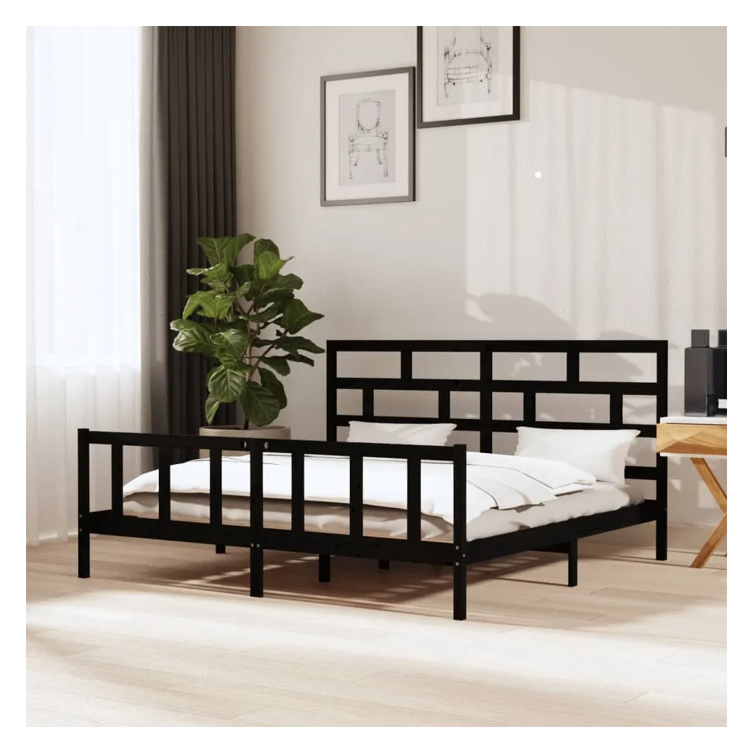 Cadre de lit sans matelas noir bois massif 200x200 cm