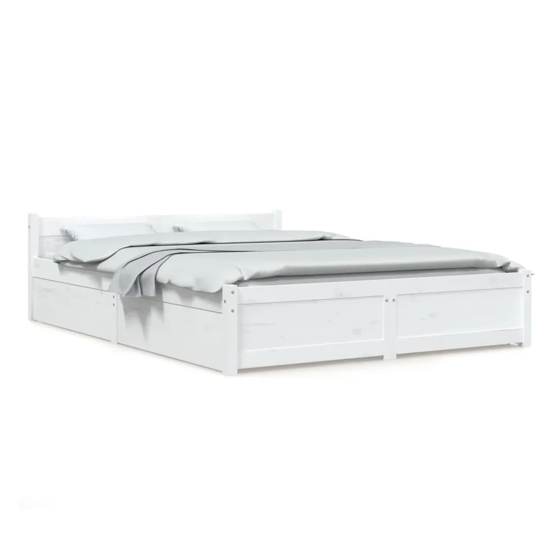 Cadre de lit sans matelas avec tiroirs blanc 160x200 cm