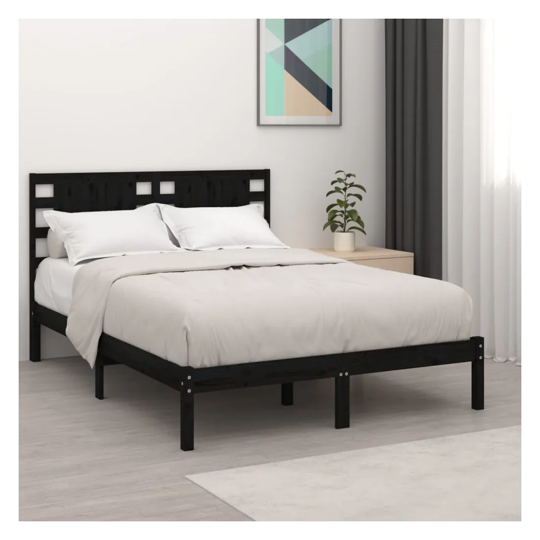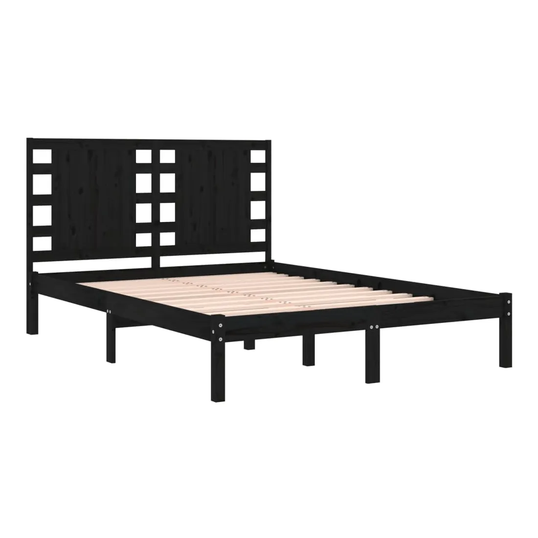 Cadre de lit sans matelas noir 140x190 cm bois de pin massif
