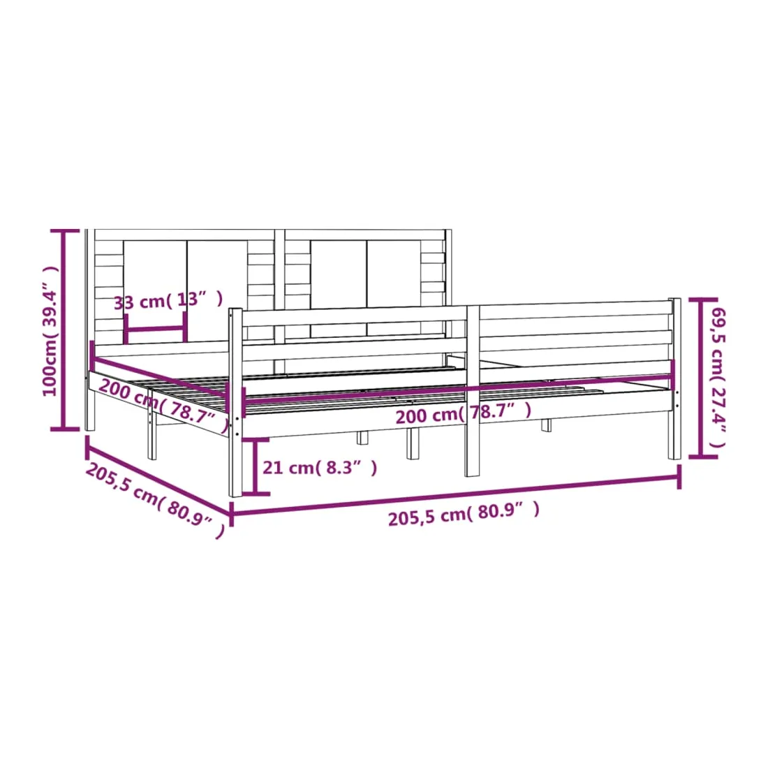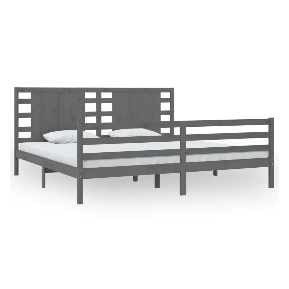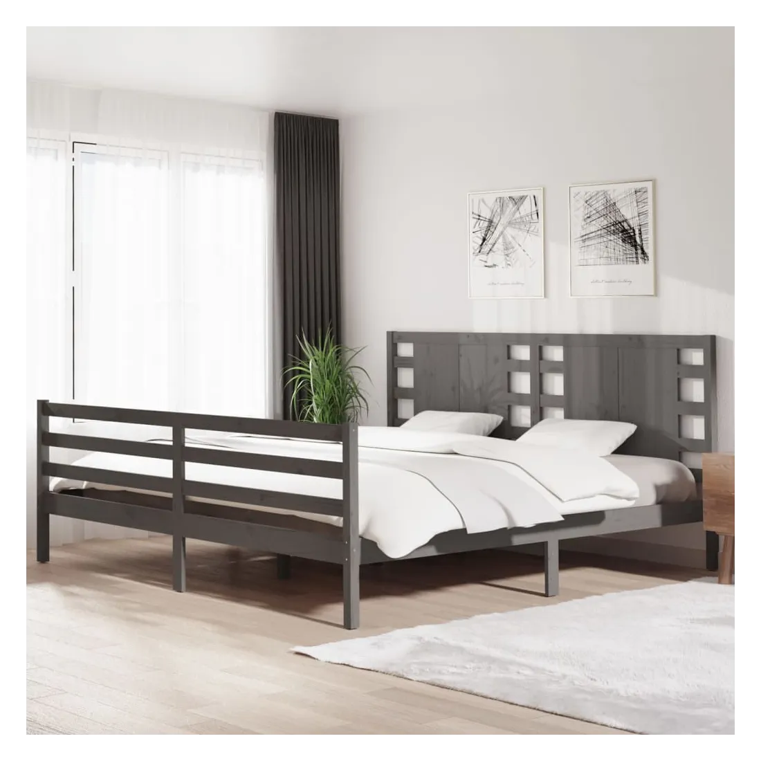 Cadre de lit sans matelas gris 200x200 cm bois massif de pin