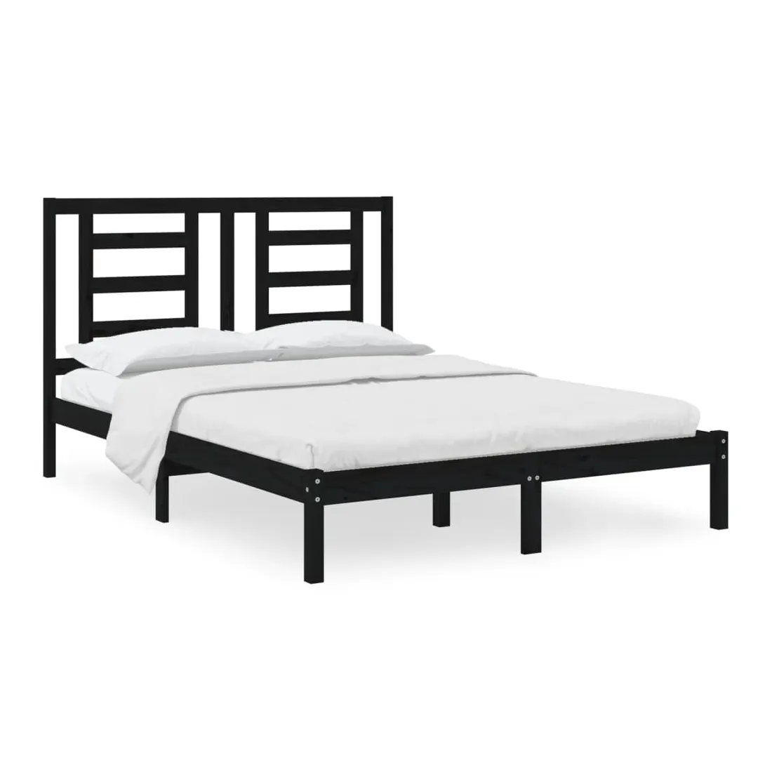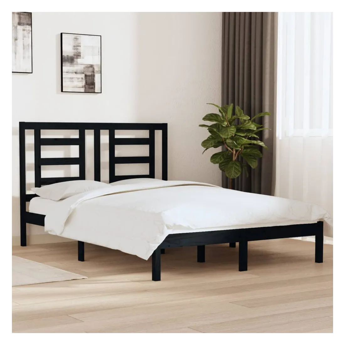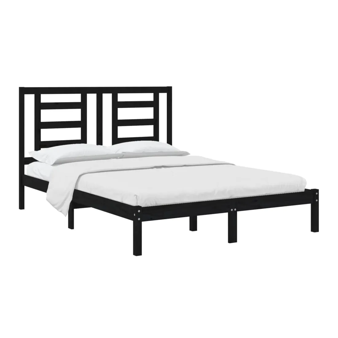Cadre de lit sans matelas noir 140x190 cm bois de pin massif