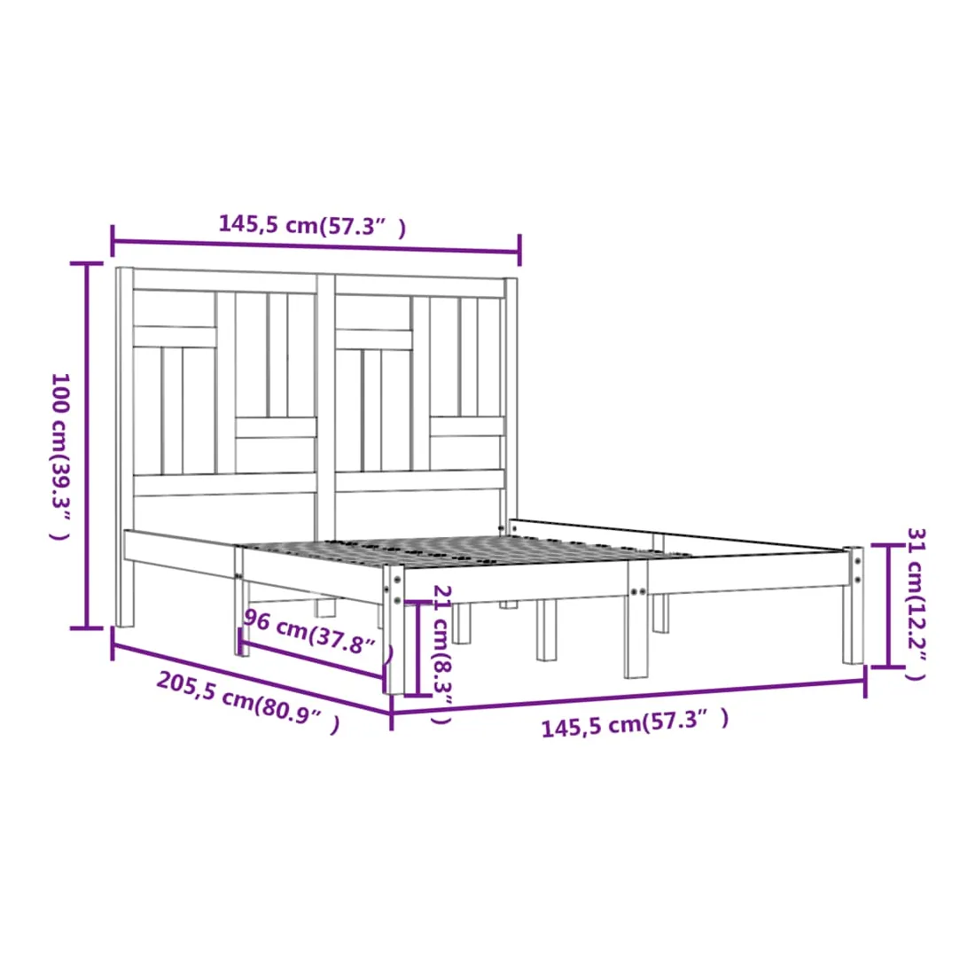• Dimensions du cadre de lit : 205,5 x 145,5 x 31 cm (L x l x H)