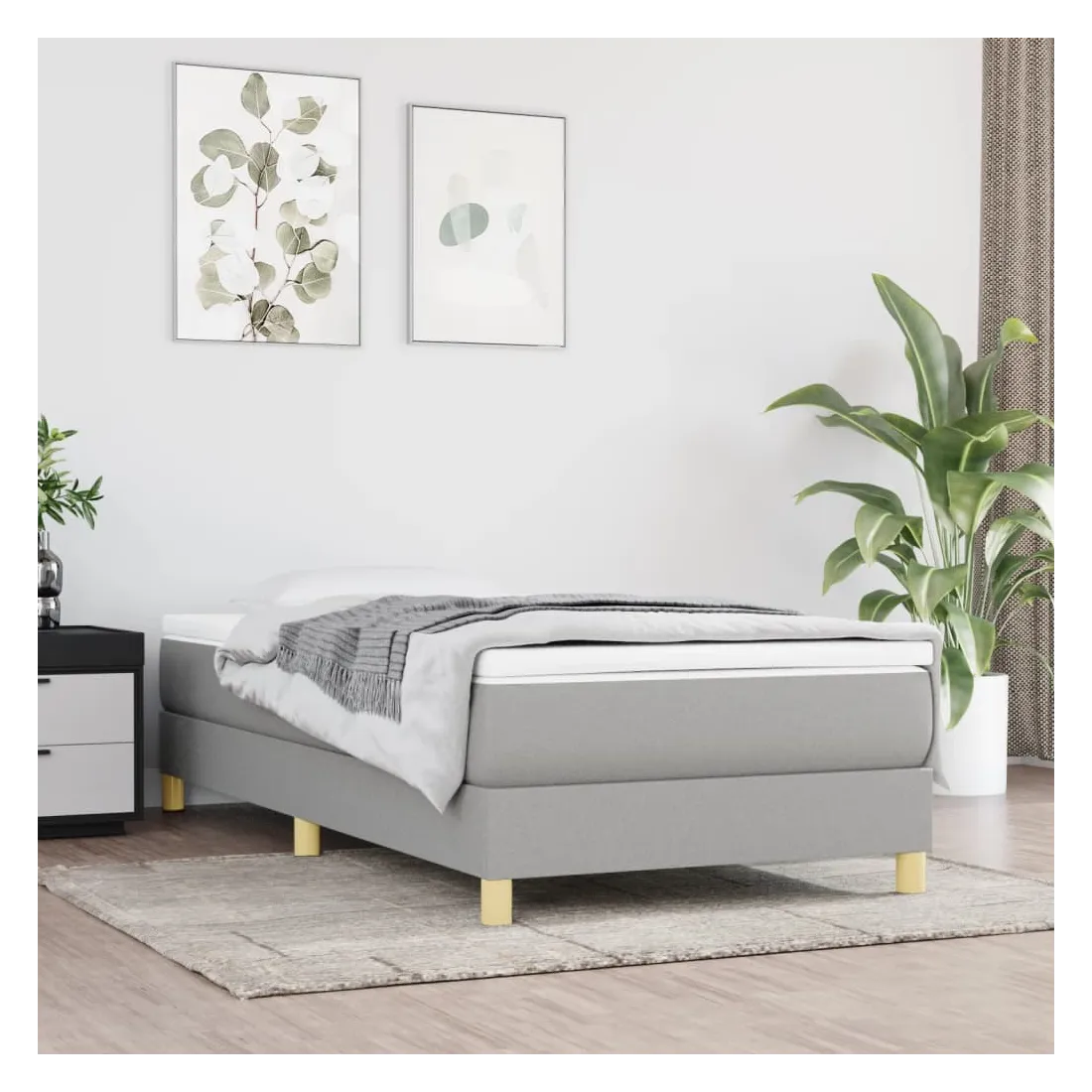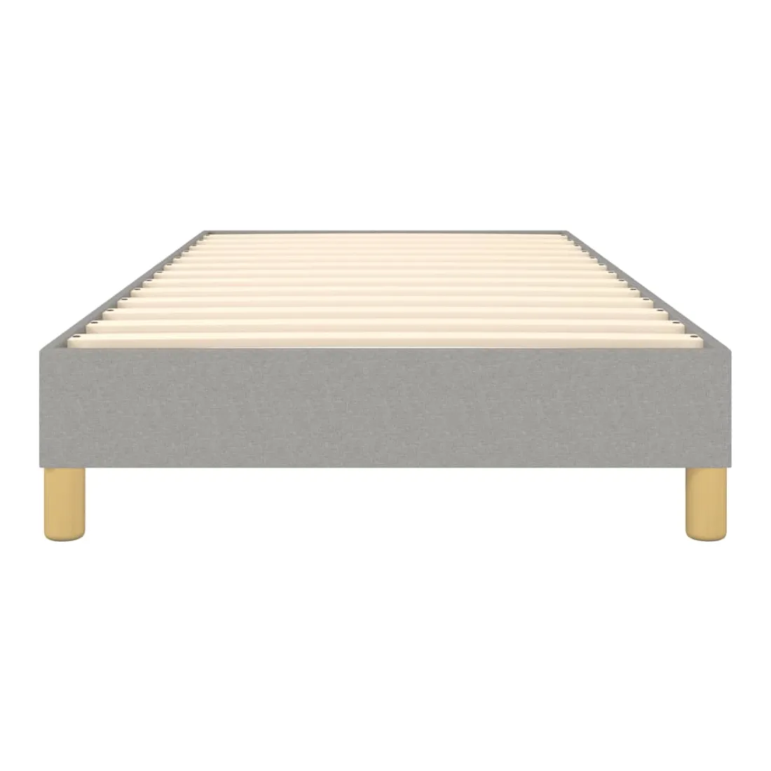 Obtenez une meilleure nuit de sommeil reposante grâce à ce cadre de lit à ressorts ! Il est un supplément accueillant à toute chambre à coucher. Tissu durable : le tissu présente un aspect simple et épuré, et il est respirant et durable.Pieds de soutien : le lit est soutenu par des pieds robustes, qui assurent sa stabilité, sa sécurité et sa fermeté.Lattes de contreplaqué : les lattes de contreplaqué assurent une bonne répartition du poids, garantissant que le matelas reste en place à chaque torsion de votre corps pendant le sommeil. Bon à savoir :Un matelas n'est pas inclus avec ce lit. Nous offrons une sélection variée de matelas. Vous pouvez consulter notre boutique pour trouver un matelas assorti.