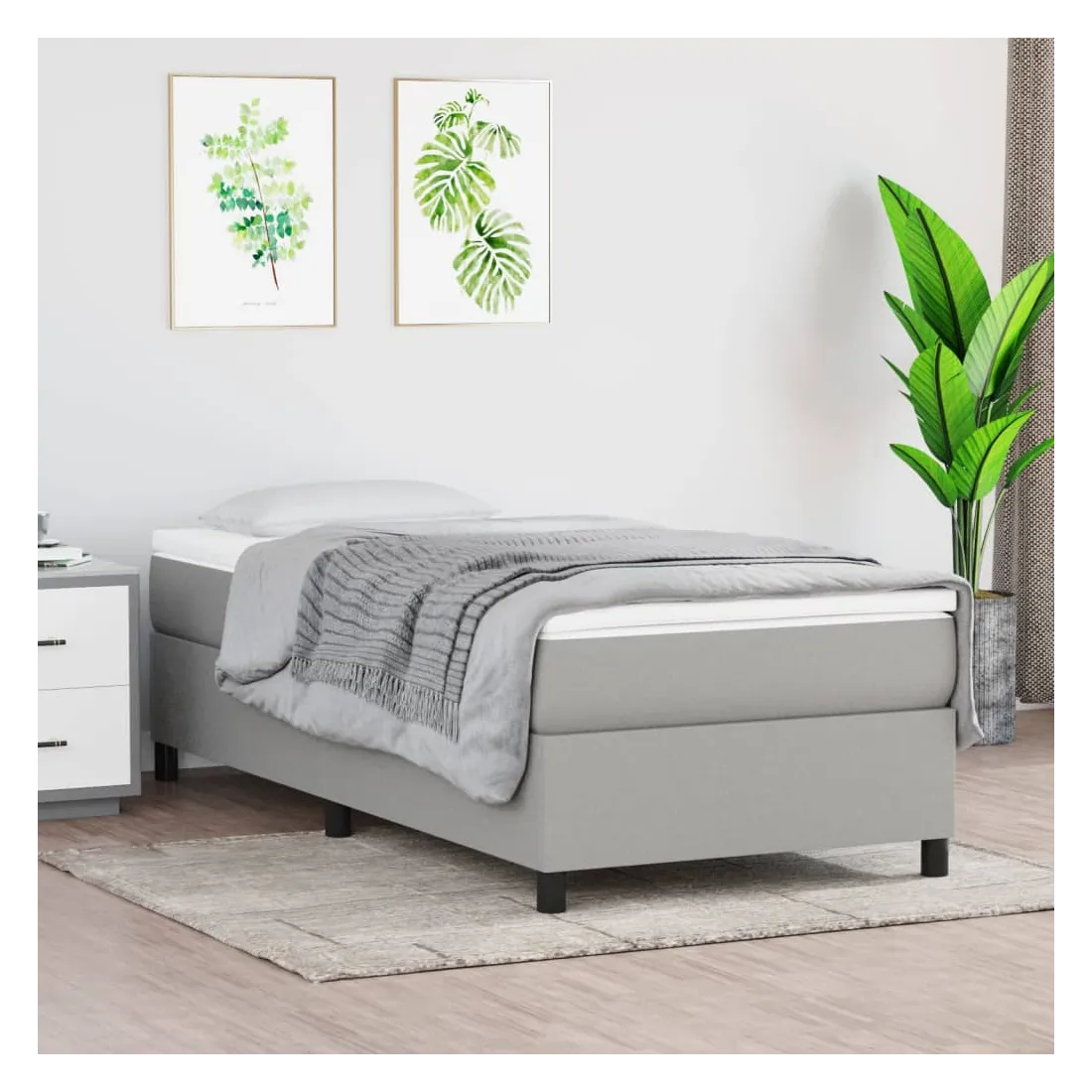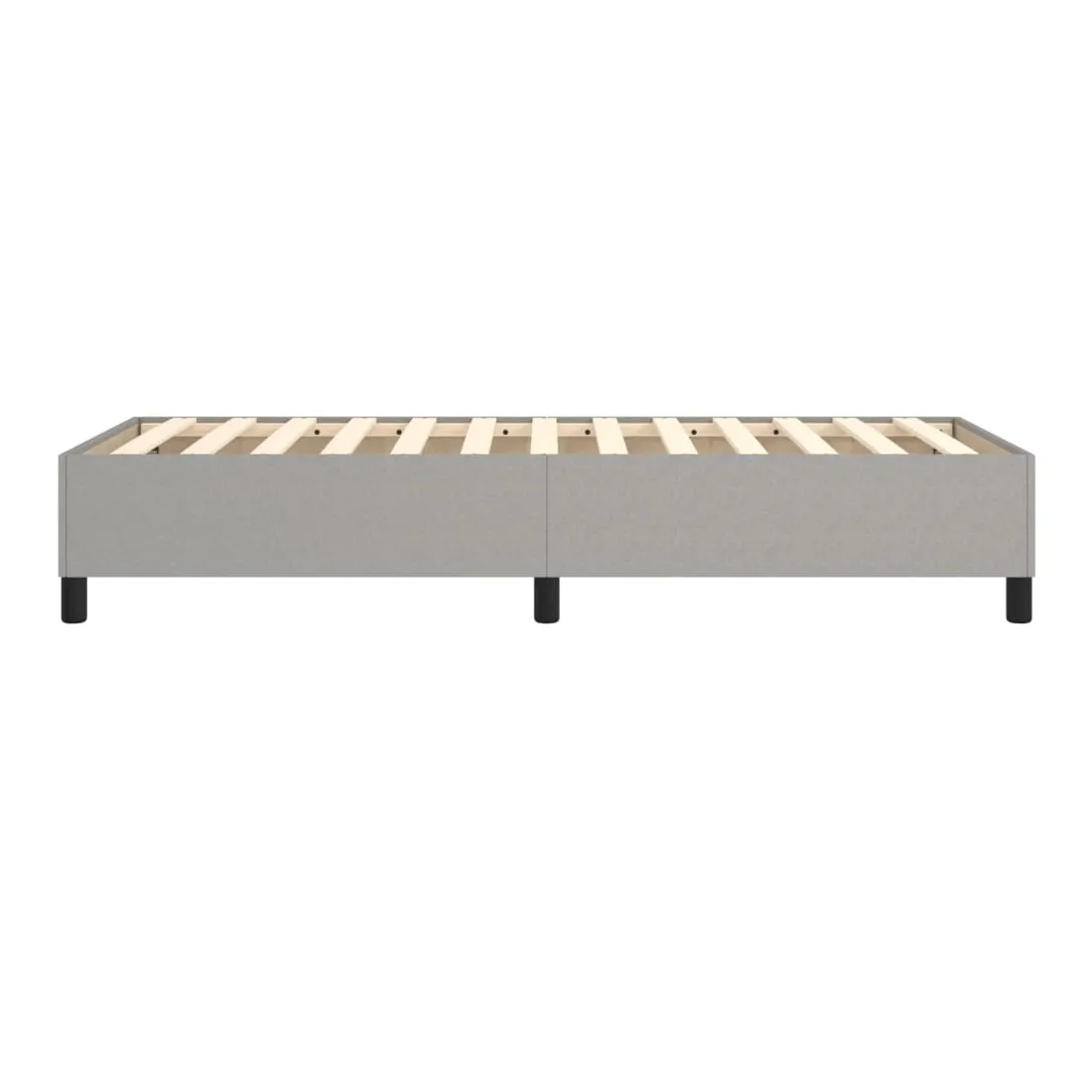 Obtenez une meilleure nuit de sommeil reposante grâce à ce cadre de lit à ressorts ! Il est un supplément accueillant à toute chambre à coucher. Tissu durable : le tissu présente un aspect simple et épuré, et il est respirant et durable.Pieds de soutien : le lit est soutenu par des pieds robustes, qui assurent sa stabilité, sa sécurité et sa fermeté.Lattes de contreplaqué : les lattes de contreplaqué assurent une bonne répartition du poids, garantissant que le matelas reste en place à chaque torsion de votre corps pendant le sommeil. Bon à savoir :Un matelas n'est pas inclus avec ce lit. Nous offrons une sélection variée de matelas. Vous pouvez consulter notre boutique pour trouver un matelas assorti.