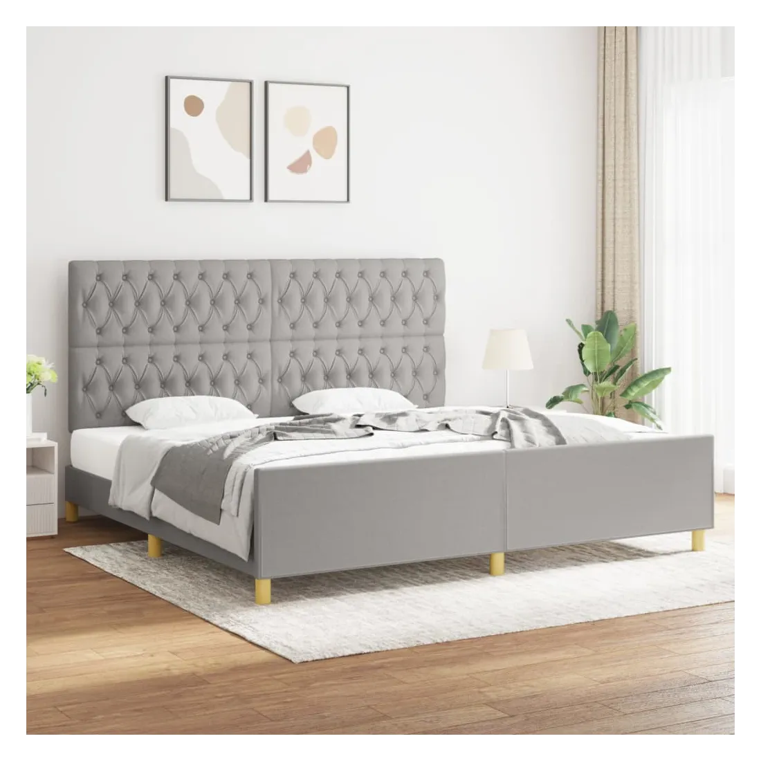 Obtenez une meilleure nuit de sommeil reposante grâce à ce cadre de lit avec tête de lit ! Il est un supplément accueillant à toute chambre à coucher. Tissu durable : le tissu présente un aspect simple et épuré, et il est respirant et durable.Hauteur réglable : la tête de lit est réglable en hauteur selon vos préférences.Pieds de soutien : le lit est soutenu par des pieds robustes, qui assurent sa stabilité, sa sécurité et sa fermeté.Lattes de contreplaqué : les lattes de contreplaqué assurent une bonne répartition du poids, garantissant que le matelas reste en place à chaque torsion de votre corps pendant le sommeil.Excellent soutien : la tête de lit vous offre un excellent soutien du dos lorsque vous êtes assis dans votre lit pour lire ou regarder la télévision. Remarque :La livraison comprend uniquement un cadre de lit. Le matelas n'est pas inclus. Vous pouvez consulter notre boutique pour trouver les matelas assortis.Chaque produit est livré avec un manuel de montage dans la boîte pour un montage facile.