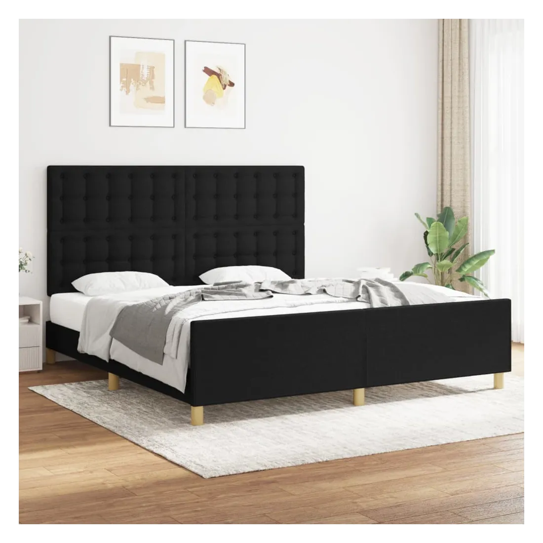 Cadre de lit sans matelas noir tissu