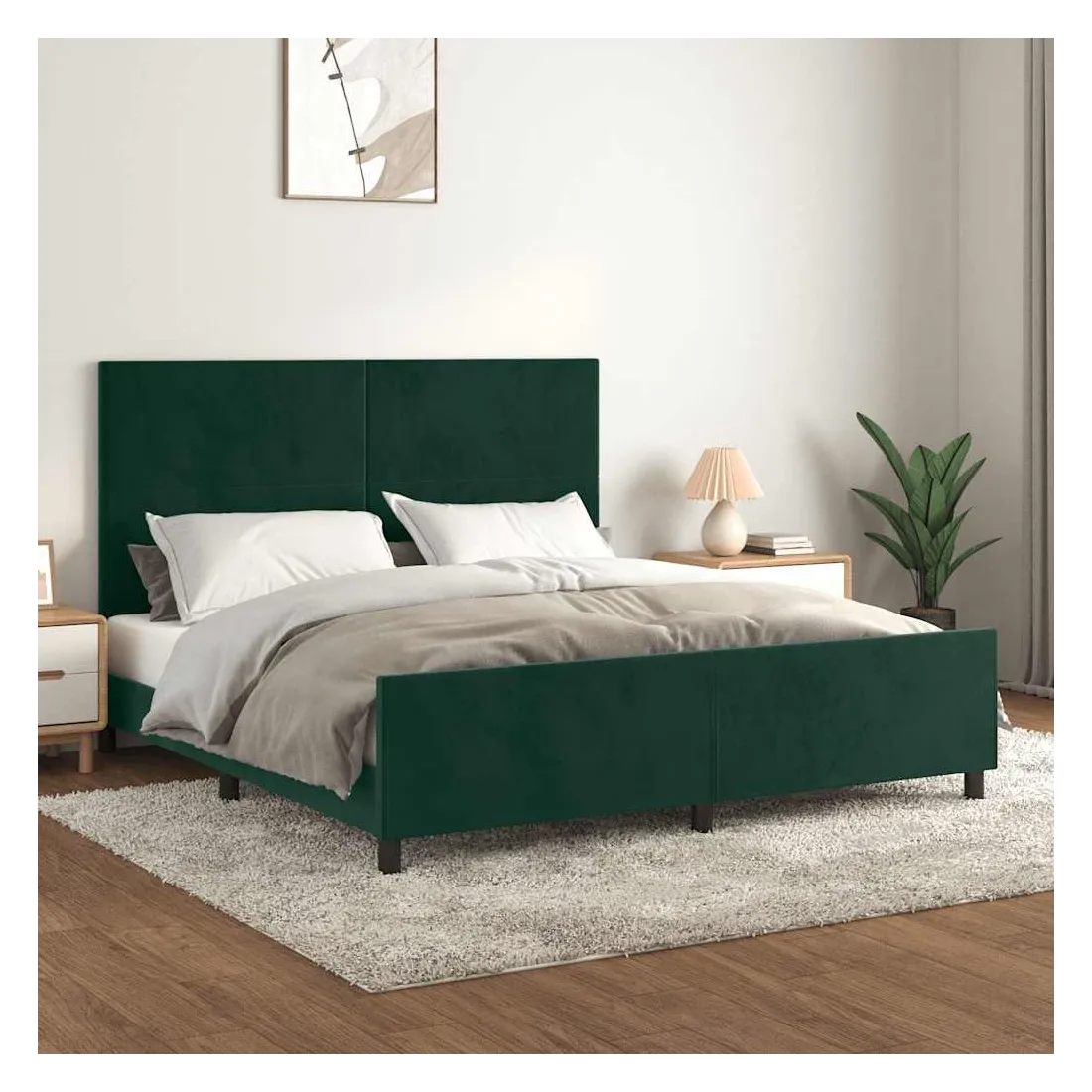 Cadre de lit sans matelas vert foncé 160x200 cm velours