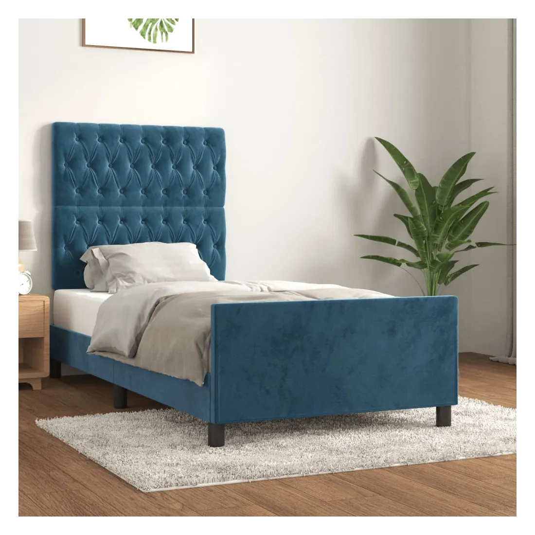 Cadre de lit sans matelas bleu foncé 90x190 cm velours