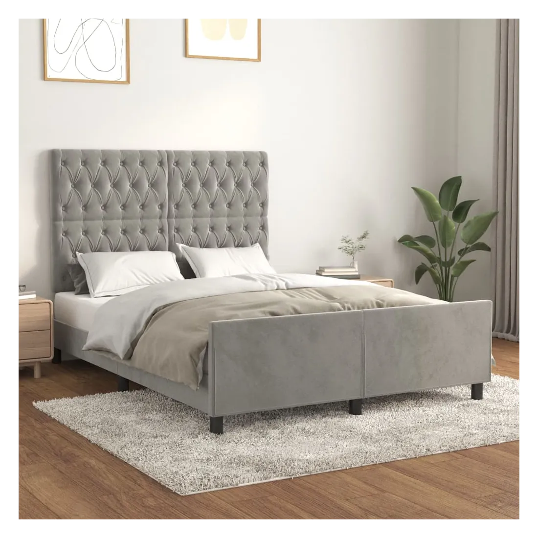 Obtenez une meilleure nuit de sommeil reposante grâce à ce cadre de lit avec tête de lit ! Il est un supplément accueillant à toute chambre à coucher. Velours doux : le velours est un tissu doux et luxueux qui se reconnaît à son tas dense de fibres uniformément coupées qui ont une touche lisse. Le tissu en velours présente un toucher doux distinctif, ce qui le rend confortable au toucher.Hauteur réglable : la tête de lit est réglable en hauteur selon vos préférences.Pieds de soutien : le lit est soutenu par des pieds robustes, qui assurent sa stabilité, sa sécurité et sa fermeté.Lattes de contreplaqué : les lattes de contreplaqué assurent une bonne répartition du poids, garantissant que le matelas reste en place à chaque torsion de votre corps pendant le sommeil.Excellent soutien : la tête de lit vous offre un excellent soutien du dos lorsque vous êtes assis dans votre lit pour lire ou regarder la télévision. Remarque :La livraison comprend uniquement un cadre de lit. Le matelas n'est pas inclus. Vous pouvez consulter notre boutique pour trouver les matelas assortis.Chaque produit est livré avec un manuel de montage dans la boîte pour un montage facile.