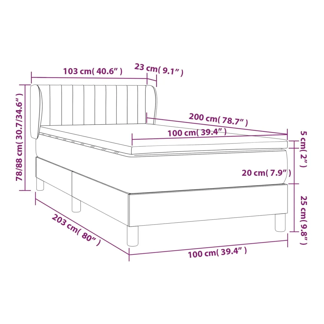 Utilisez ce lit à sommier pour profiter d'une nuit de sommeil réparatrice ! Il vous offre une relaxation maximale et un sommeil agréable. Velours doux : le velours est un tissu doux et luxueux qui se reconnaît à son tas dense de fibres uniformément coupées qui ont une touche lisse. Le tissu en velours présente un toucher doux distinctif, ce qui le rend confortable au toucher.Tête de lit pratique : la tête de lit est réglable en hauteur selon vos préférences. La tête de lit vous offre un excellent soutien du dos lorsque vous êtes assis dans votre lit pour lire ou regarder la télévision.Matelas à ressorts ensachés : le ressort ensaché individuel intégré est connu pour sa très haute qualité tout en assurant un haut niveau de durabilité et d'adaptabilité. Il peut absorber efficacement le bruit et les chocs causés par les sauts et les rotations.Support moyen-dur : ce matelas de lit offre une stabilité accrue et juste le niveau de fermeté sans sacrifier le confort. Il est donc idéal pour les personnes qui dorment sur le dos ou sur le ventre.Protège-matelas doux pour la peau : le protège-matelas est recouvert d'un tissu résistant et doux pour la peau, ce qui le rend souple et confortable. Remarque :Pour des raisons d'hygiène, le matelas ne peut pas être retourné si l'emballage est retiré ou ouvert.Chaque produit est livré avec un manuel de montage dans la boîte pour un montage facile.