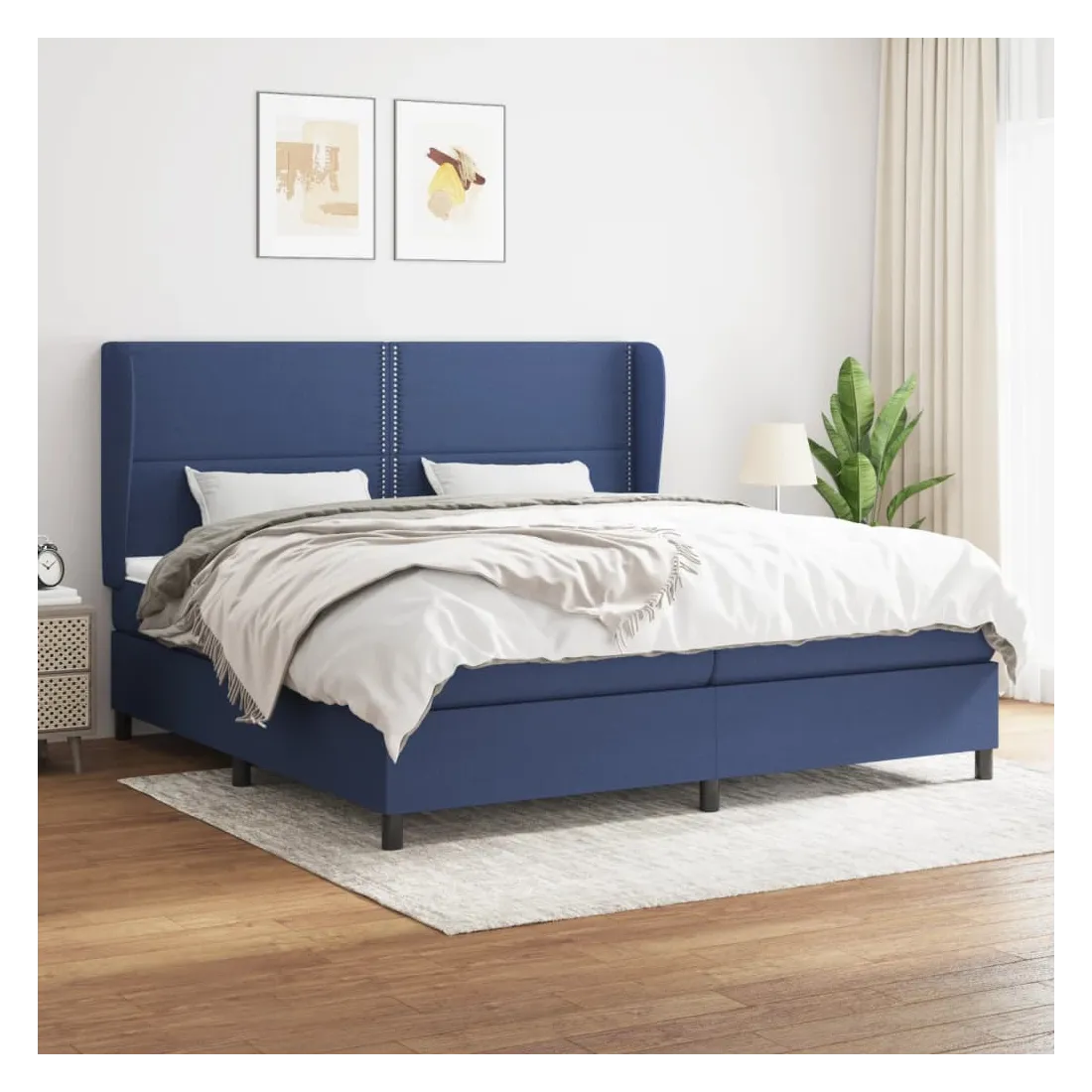 Sommier à lattes de lit avec matelas Bleu 200x200 cm Tissu