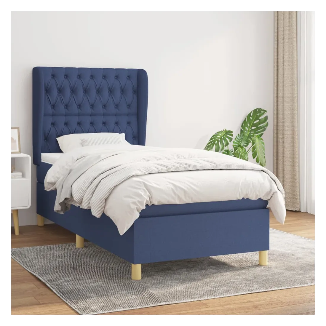 Sommier à lattes de lit avec matelas Bleu 90x200 cm Tissu