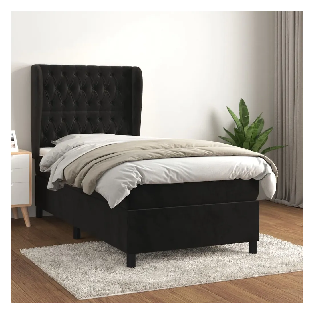 Utilisez ce lit à sommier pour profiter d'une nuit de sommeil réparatrice ! Il vous offre une relaxation maximale et un sommeil agréable. Velours doux : le velours est un tissu doux et luxueux qui se reconnaît à son tas dense de fibres uniformément coupées qui ont une touche lisse. Le tissu en velours présente un toucher doux distinctif, ce qui le rend confortable au toucher.Tête de lit pratique : la tête de lit est réglable en hauteur selon vos préférences. La tête de lit vous offre un excellent soutien du dos lorsque vous êtes assis dans votre lit pour lire ou regarder la télévision.Matelas à ressorts ensachés : le ressort ensaché individuel intégré est connu pour sa très haute qualité tout en assurant un haut niveau de durabilité et d'adaptabilité. Il peut absorber efficacement le bruit et les chocs causés par les sauts et les rotations.Support moyen-dur : ce matelas de lit offre une stabilité accrue et juste le niveau de fermeté sans sacrifier le confort. Il est donc idéal pour les personnes qui dorment sur le dos ou sur le ventre.Protège-matelas doux pour la peau : le protège-matelas est recouvert d'un tissu résistant et doux pour la peau, ce qui le rend souple et confortable. Remarque :Pour des raisons d'hygiène, le matelas ne peut pas être retourné si l'emballage est retiré ou ouvert.Chaque produit est livré avec un manuel de montage dans la boîte pour un montage facile.