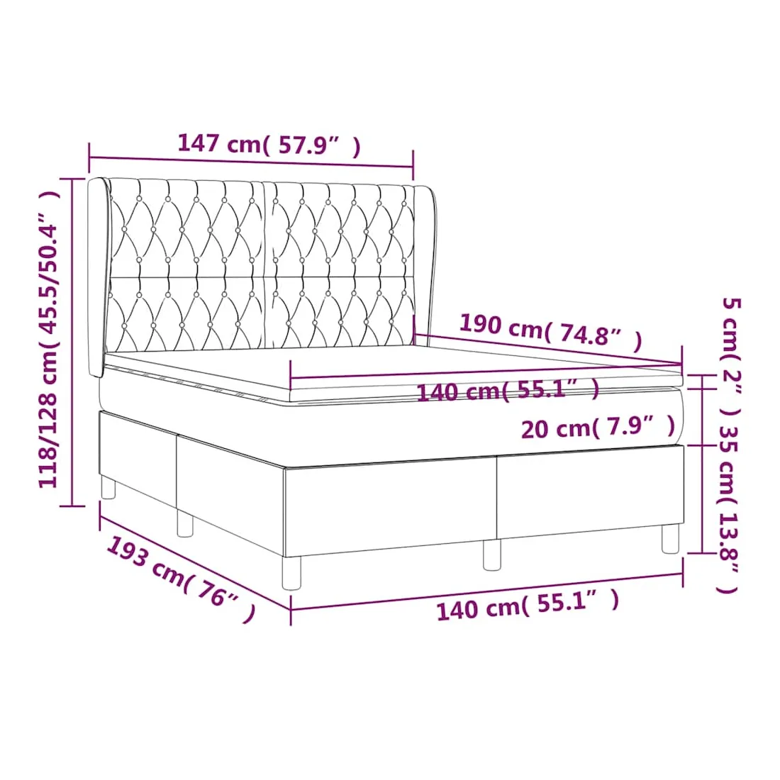 - Dimensions : 140 x 190 x 20 cm (l x L x H)