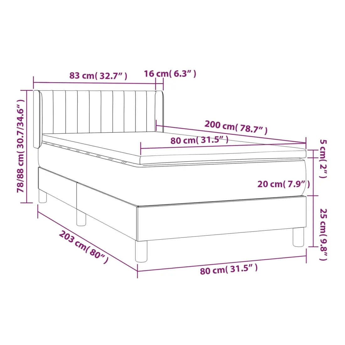 • Dimensions : 80 x 200 x 20 cm (l x L x H)