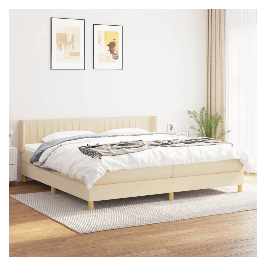Sommier à lattes de lit avec matelas Crème 200x200 cm Tissu