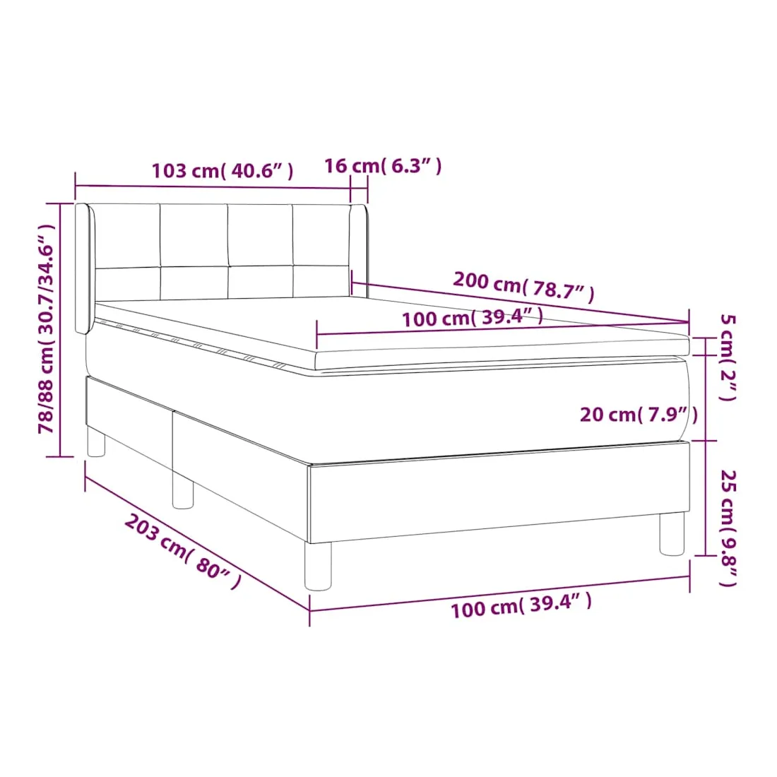 Utilisez ce lit à sommier pour profiter d'une nuit de sommeil réparatrice ! Il vous offre une relaxation maximale et un sommeil agréable. Velours doux : le velours est un tissu doux et luxueux qui se reconnaît à son tas dense de fibres uniformément coupées qui ont une touche lisse. Le tissu en velours présente un toucher doux distinctif, ce qui le rend confortable au toucher.Tête de lit pratique : la tête de lit est réglable en hauteur selon vos préférences. La tête de lit vous offre un excellent soutien du dos lorsque vous êtes assis dans votre lit pour lire ou regarder la télévision.Matelas à ressorts ensachés : le ressort ensaché individuel intégré est connu pour sa très haute qualité tout en assurant un haut niveau de durabilité et d'adaptabilité. Il peut absorber efficacement le bruit et les chocs causés par les sauts et les rotations.Support moyen-dur : ce matelas de lit offre une stabilité accrue et juste le niveau de fermeté sans sacrifier le confort. Il est donc idéal pour les personnes qui dorment sur le dos ou sur le ventre.Protège-matelas doux pour la peau : le protège-matelas est recouvert d'un tissu résistant et doux pour la peau, ce qui le rend souple et confortable. Remarque :Pour des raisons d'hygiène, le matelas ne peut pas être retourné si l'emballage est retiré ou ouvert.Chaque produit est livré avec un manuel de montage dans la boîte pour un montage facile.