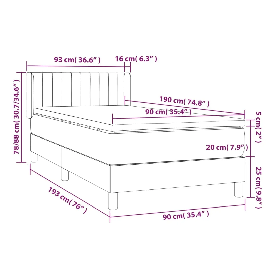 Utilisez ce lit à sommier pour profiter d'une nuit de sommeil réparatrice ! Il vous offre une relaxation maximale et un sommeil agréable. Velours doux : le velours est un tissu doux et luxueux qui se reconnaît à son tas dense de fibres uniformément coupées qui ont une touche lisse. Le tissu en velours présente un toucher doux distinctif, ce qui le rend confortable au toucher.Tête de lit pratique : la tête de lit est réglable en hauteur selon vos préférences. La tête de lit vous offre un excellent soutien du dos lorsque vous êtes assis dans votre lit pour lire ou regarder la télévision.Matelas à ressorts ensachés : le ressort ensaché individuel intégré est connu pour sa très haute qualité tout en assurant un haut niveau de durabilité et d'adaptabilité. Il peut absorber efficacement le bruit et les chocs causés par les sauts et les rotations.Support moyen-dur : ce matelas de lit offre une stabilité accrue et juste le niveau de fermeté sans sacrifier le confort. Il est donc idéal pour les personnes qui dorment sur le dos ou sur le ventre.Protège-matelas doux pour la peau : le protège-matelas est recouvert d'un tissu résistant et doux pour la peau, ce qui le rend souple et confortable. Remarque :Pour des raisons d'hygiène, le matelas ne peut pas être retourné si l'emballage est retiré ou ouvert.Chaque produit est livré avec un manuel de montage dans la boîte pour un montage facile.