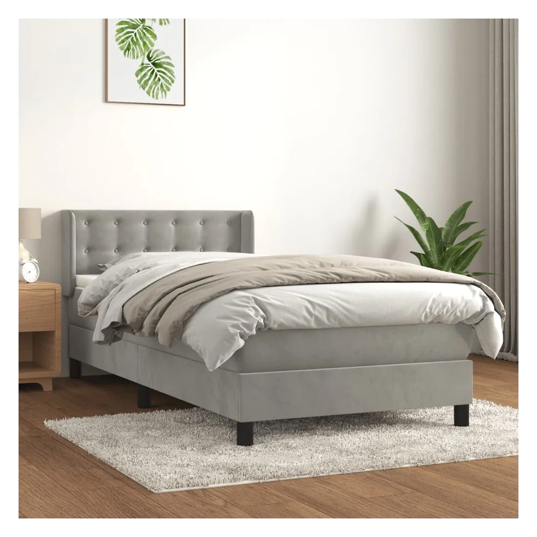 Sommier à lattes de lit et matelas Gris clair 90x200 cm Velours