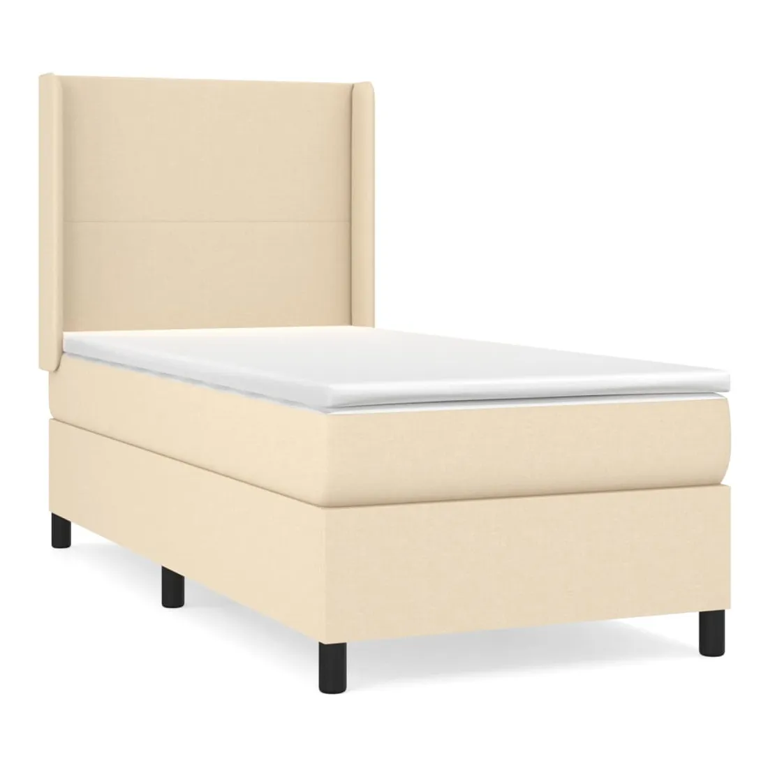 Sommier à lattes de lit et matelas Crème 90x190 cm Tissu