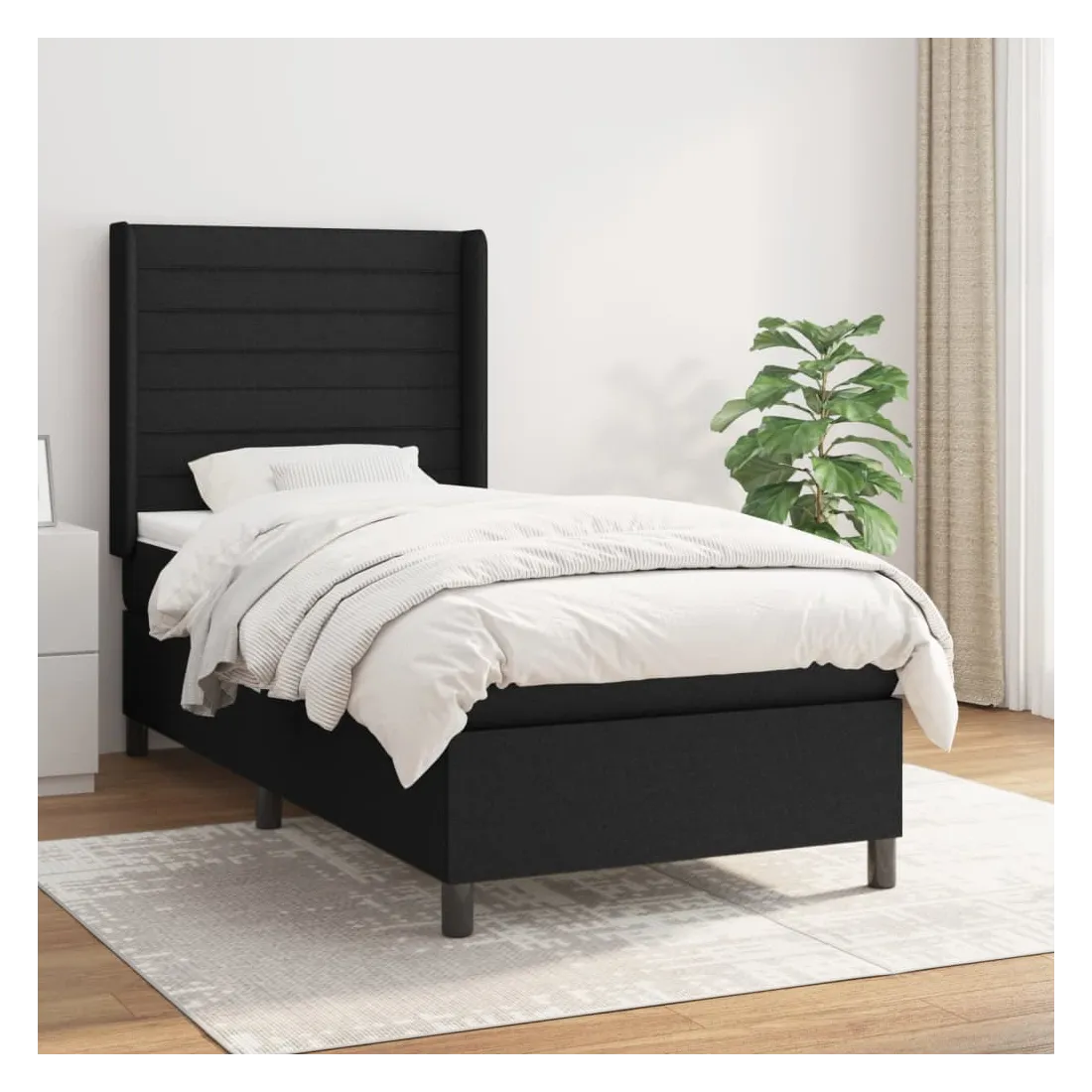 Sommier à lattes de lit avec matelas Noir 100x200 cm Tissu