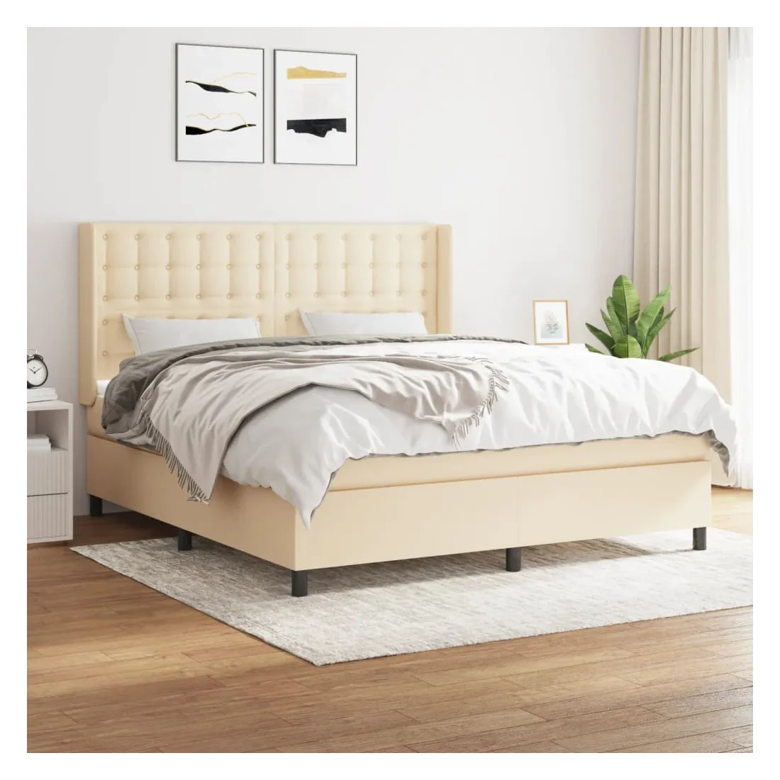 Sommier à lattes de lit avec matelas Crème 160x200 cm Tissu