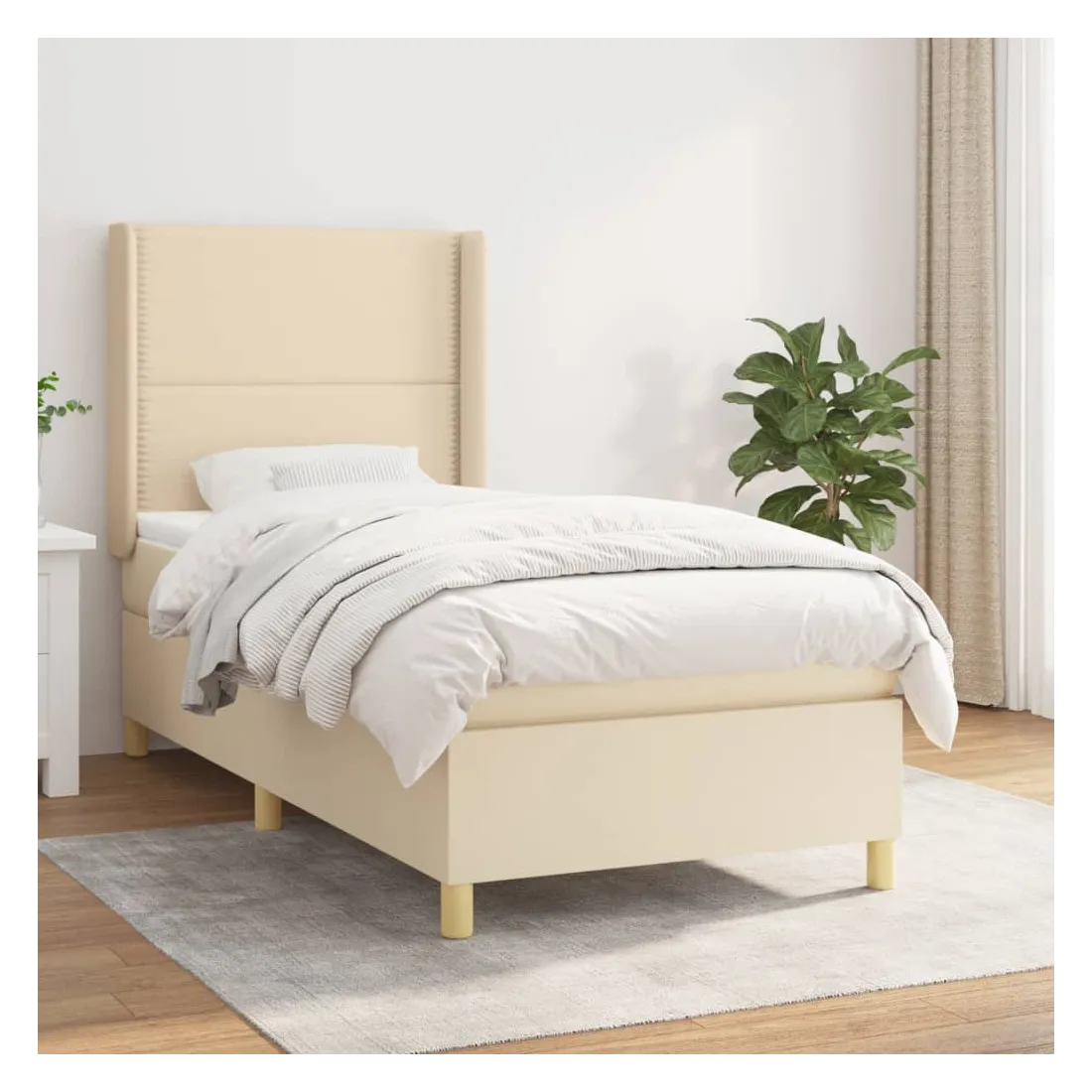 Sommier à lattes de lit avec matelas Crème 100x200 cm Tissu