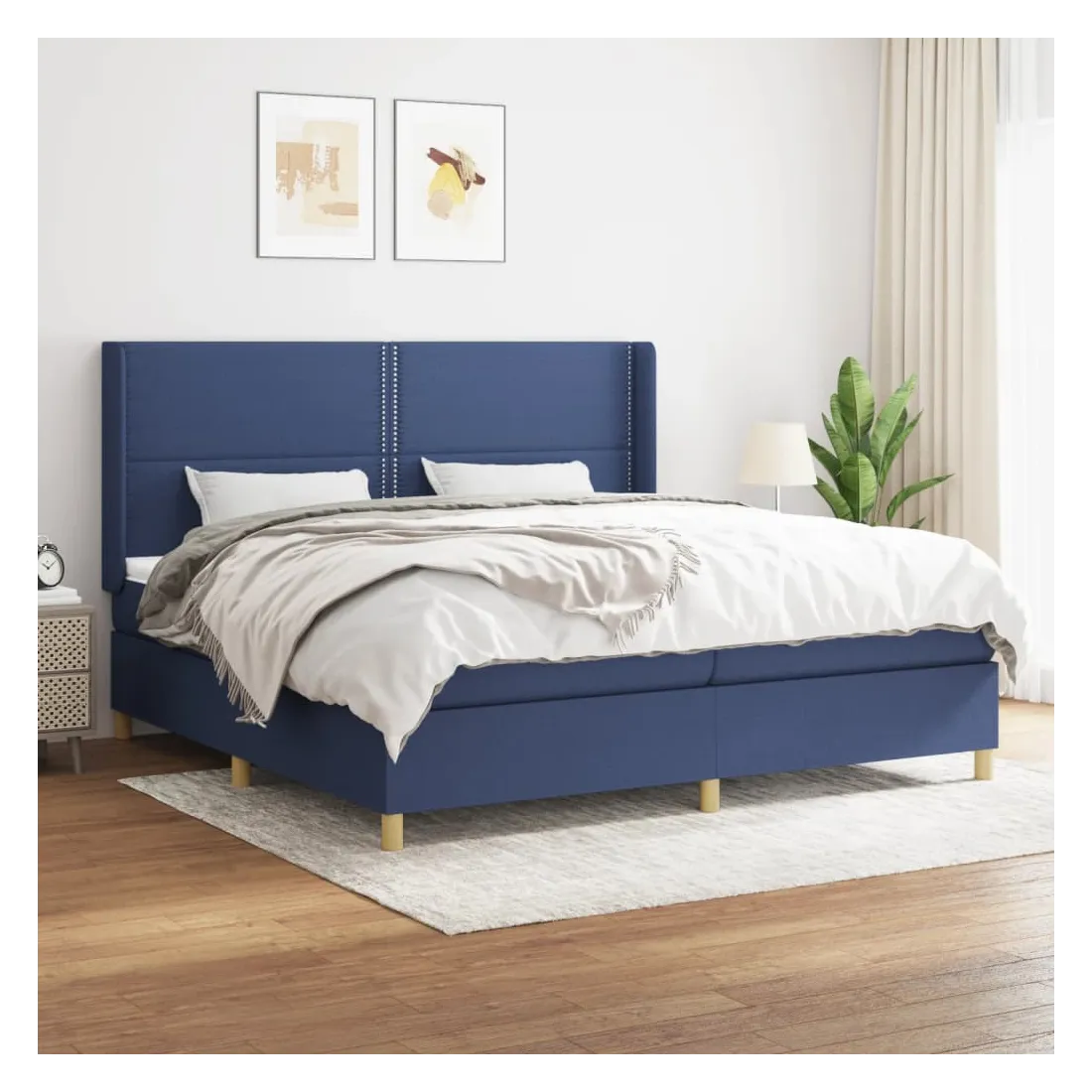 Sommier à lattes de lit avec matelas Bleu 200x200 cm Tissu