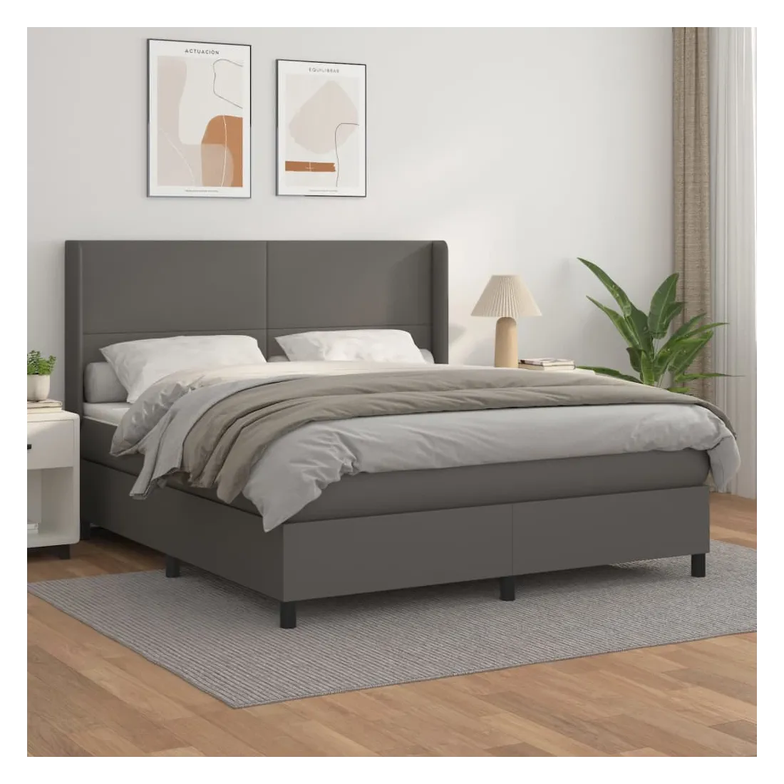 Sommier à lattes de lit avec matelas Gris 160x200 cm Similicuir
