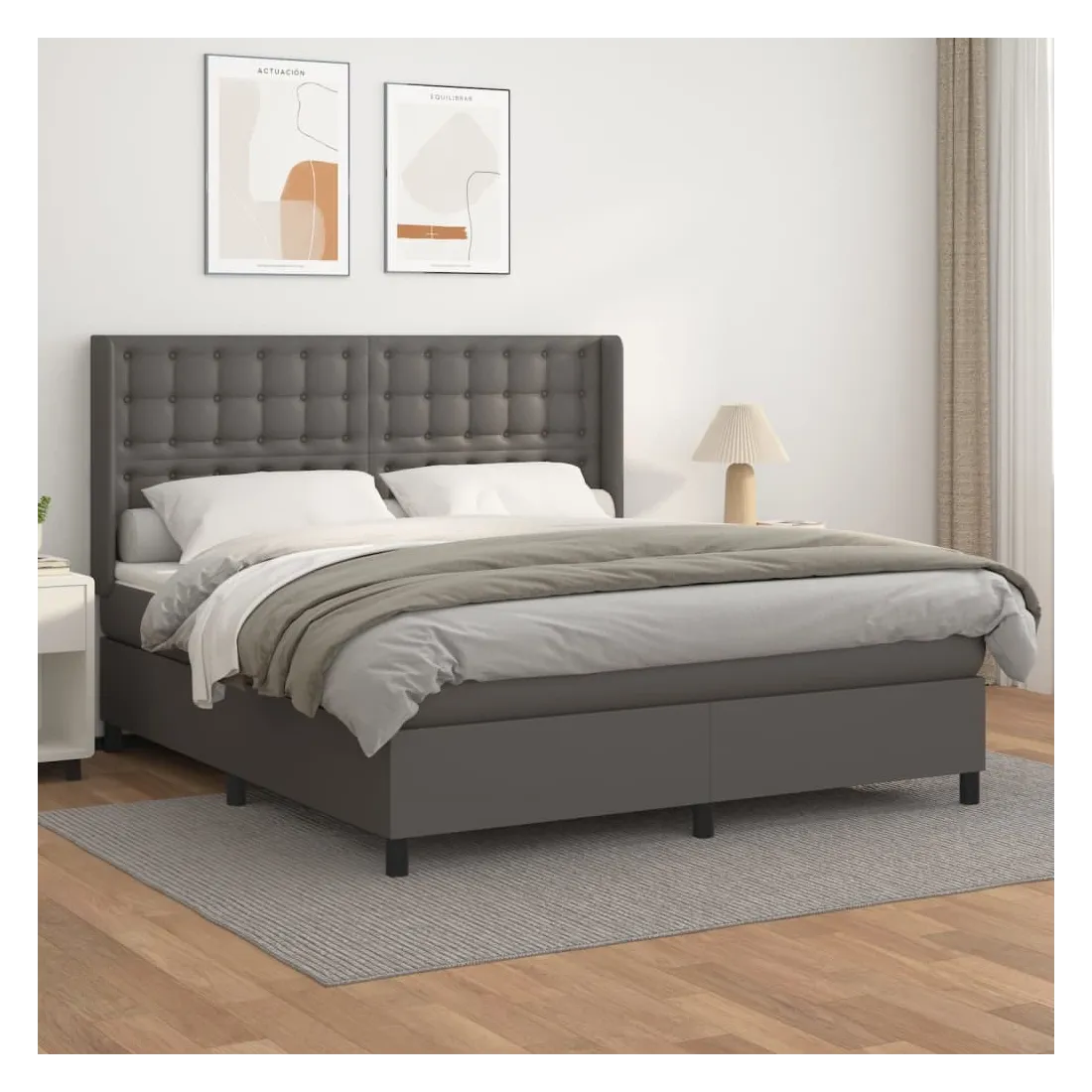Sommier à lattes de lit avec matelas Gris 180x200 cm Similicuir