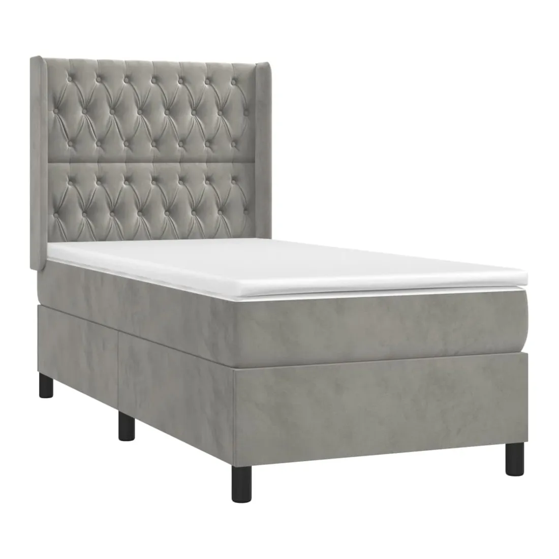 Utilisez ce lit à sommier pour profiter d'une nuit de sommeil réparatrice ! Il vous offre une relaxation maximale et un sommeil agréable. Velours doux : le velours est un tissu doux et luxueux qui se reconnaît à son tas dense de fibres uniformément coupées qui ont une touche lisse. Le tissu en velours présente un toucher doux distinctif, ce qui le rend confortable au toucher.Tête de lit pratique : la tête de lit est réglable en hauteur selon vos préférences. La tête de lit vous offre un excellent soutien du dos lorsque vous êtes assis dans votre lit pour lire ou regarder la télévision.Matelas à ressorts ensachés : le ressort ensaché individuel intégré est connu pour sa très haute qualité tout en assurant un haut niveau de durabilité et d'adaptabilité. Il peut absorber efficacement le bruit et les chocs causés par les sauts et les rotations.Support moyen-dur : ce matelas de lit offre une stabilité accrue et juste le niveau de fermeté sans sacrifier le confort. Il est donc idéal pour les personnes qui dorment sur le dos ou sur le ventre.Protège-matelas doux pour la peau : le protège-matelas est recouvert d'un tissu résistant et doux pour la peau, ce qui le rend souple et confortable. Remarque :Pour des raisons d'hygiène, le matelas ne peut pas être retourné si l'emballage est retiré ou ouvert.Chaque produit est livré avec un manuel de montage dans la boîte pour un montage facile.