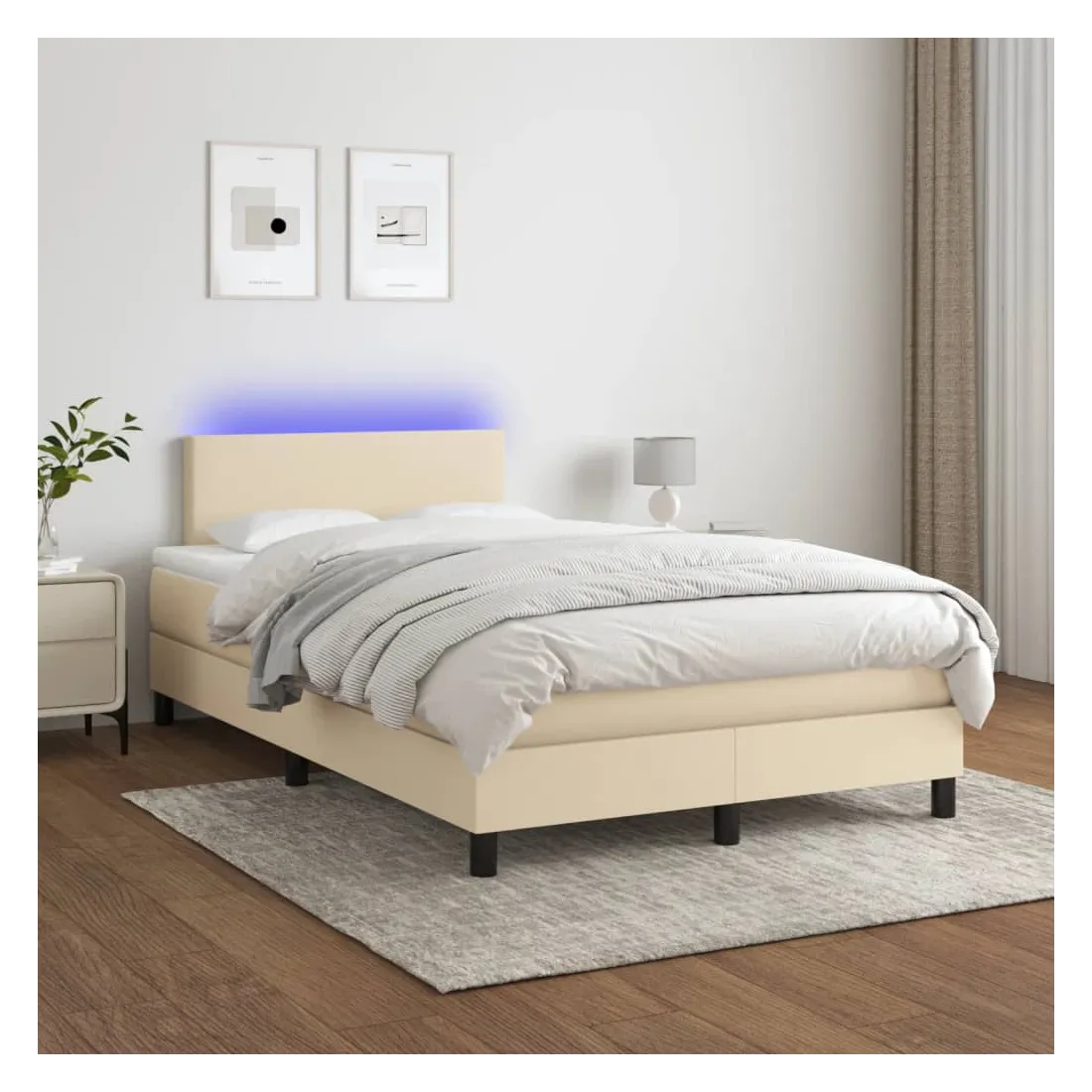 Utilisez ce sommier tapissier avec matelas et LED pour profiter d'un sommeil réparateur ! C'est le point central de votre chambre à coucher. Tissu durable : le tissu présente un aspect simple et épuré, et il est respirant et durable.Tête de lit pratique : la tête de lit est réglable en hauteur selon vos préférences. La tête de lit vous offre un excellent soutien du dos lorsque vous êtes assis dans votre lit pour lire ou regarder la télévision.Bande LED colorée : apportez de l'éclairage dans l'obscurité avec des lumières LED colorées !Matelas à ressorts ensachés : le ressort ensaché individuel intégré est connu pour sa très haute qualité tout en assurant un haut niveau de durabilité et d'adaptabilité. Il peut absorber efficacement le bruit et les chocs causés par les sauts et les rotations.Protège-matelas doux pour la peau : le protège-matelas est recouvert d'un tissu résistant et doux pour la peau, ce qui le rend souple et confortable. Remarque :Pour des raisons d'hygiène, le matelas ne peut pas être retourné si l'emballage est retiré ou ouvert.Chaque produit est livré avec un manuel de montage dans la boîte pour un montage facile.Seule la partie avec un symbole de ciseaux peut être coupée et seule la partie avec l'USB continuera à fonctionner comme avant.Ce produit est doté d'un connecteur USB, mais la source d'alimentation certifiée de USB 5V n'est pas incluse.