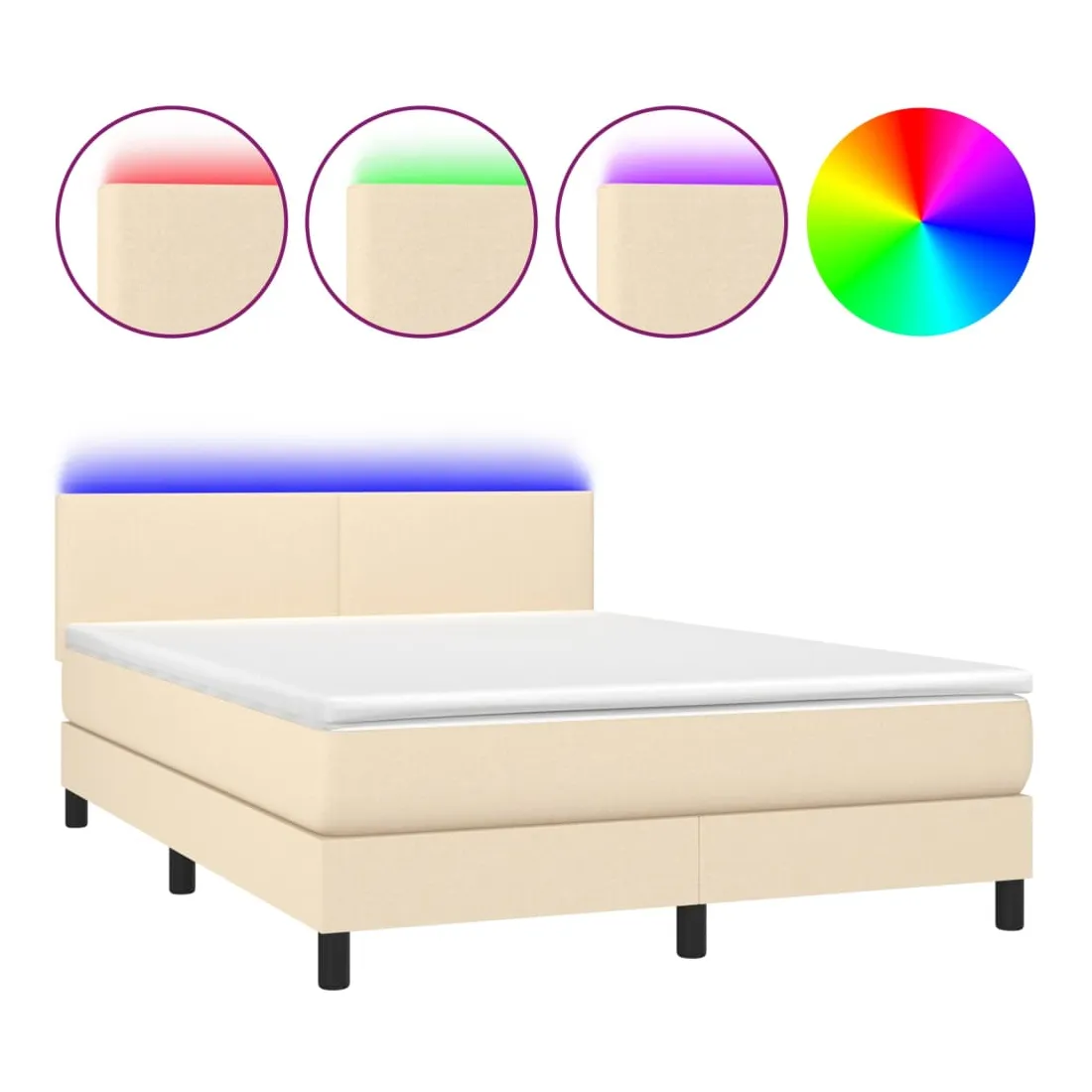 Utilisez ce sommier tapissier avec matelas et LED pour profiter d'un sommeil réparateur ! C'est le point central de votre chambre à coucher. Tissu durable : le tissu présente un aspect simple et épuré, et il est respirant et durable.Tête de lit pratique : la tête de lit est réglable en hauteur selon vos préférences. La tête de lit vous offre un excellent soutien du dos lorsque vous êtes assis dans votre lit pour lire ou regarder la télévision.Bande LED colorée : apportez de l'éclairage dans l'obscurité avec des lumières LED colorées !Matelas à ressorts ensachés : le ressort ensaché individuel intégré est connu pour sa très haute qualité tout en assurant un haut niveau de durabilité et d'adaptabilité. Il peut absorber efficacement le bruit et les chocs causés par les sauts et les rotations.Protège-matelas doux pour la peau : le protège-matelas est recouvert d'un tissu résistant et doux pour la peau, ce qui le rend souple et confortable. Remarque :Pour des raisons d'hygiène, le matelas ne peut pas être retourné si l'emballage est retiré ou ouvert.Chaque produit est livré avec un manuel de montage dans la boîte pour un montage facile.Seule la partie avec un symbole de ciseaux peut être coupée et seule la partie avec l'USB continuera à fonctionner comme avant.Ce produit est doté d'un connecteur USB, mais la source d'alimentation certifiée de USB 5V n'est pas incluse.