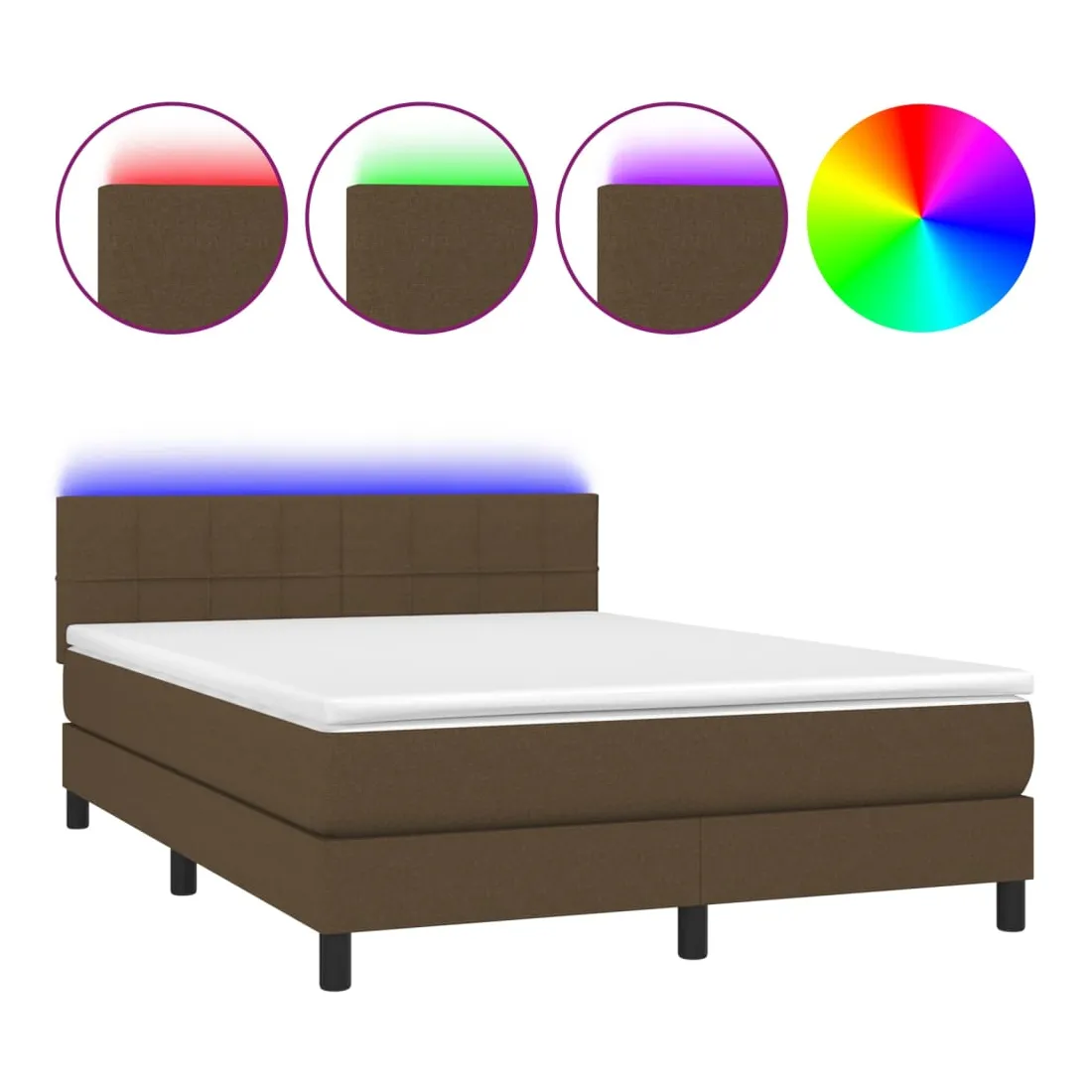 Utilisez ce sommier tapissier avec matelas et LED pour profiter d'un sommeil réparateur ! C'est le point central de votre chambre à coucher. Tissu durable : le tissu présente un aspect simple et épuré, et il est respirant et durable.Tête de lit pratique : la tête de lit est réglable en hauteur selon vos préférences. La tête de lit vous offre un excellent soutien du dos lorsque vous êtes assis dans votre lit pour lire ou regarder la télévision.Bande LED colorée : apportez de l'éclairage dans l'obscurité avec des lumières LED colorées !Matelas à ressorts ensachés : le ressort ensaché individuel intégré est connu pour sa très haute qualité tout en assurant un haut niveau de durabilité et d'adaptabilité. Il peut absorber efficacement le bruit et les chocs causés par les sauts et les rotations.Protège-matelas doux pour la peau : le protège-matelas est recouvert d'un tissu résistant et doux pour la peau, ce qui le rend souple et confortable. Remarque :Pour des raisons d'hygiène, le matelas ne peut pas être retourné si l'emballage est retiré ou ouvert.Chaque produit est livré avec un manuel de montage dans la boîte pour un montage facile.Seule la partie avec un symbole de ciseaux peut être coupée et seule la partie avec l'USB continuera à fonctionner comme avant.Ce produit est doté d'un connecteur USB, mais la source d'alimentation certifiée de USB 5V n'est pas incluse.