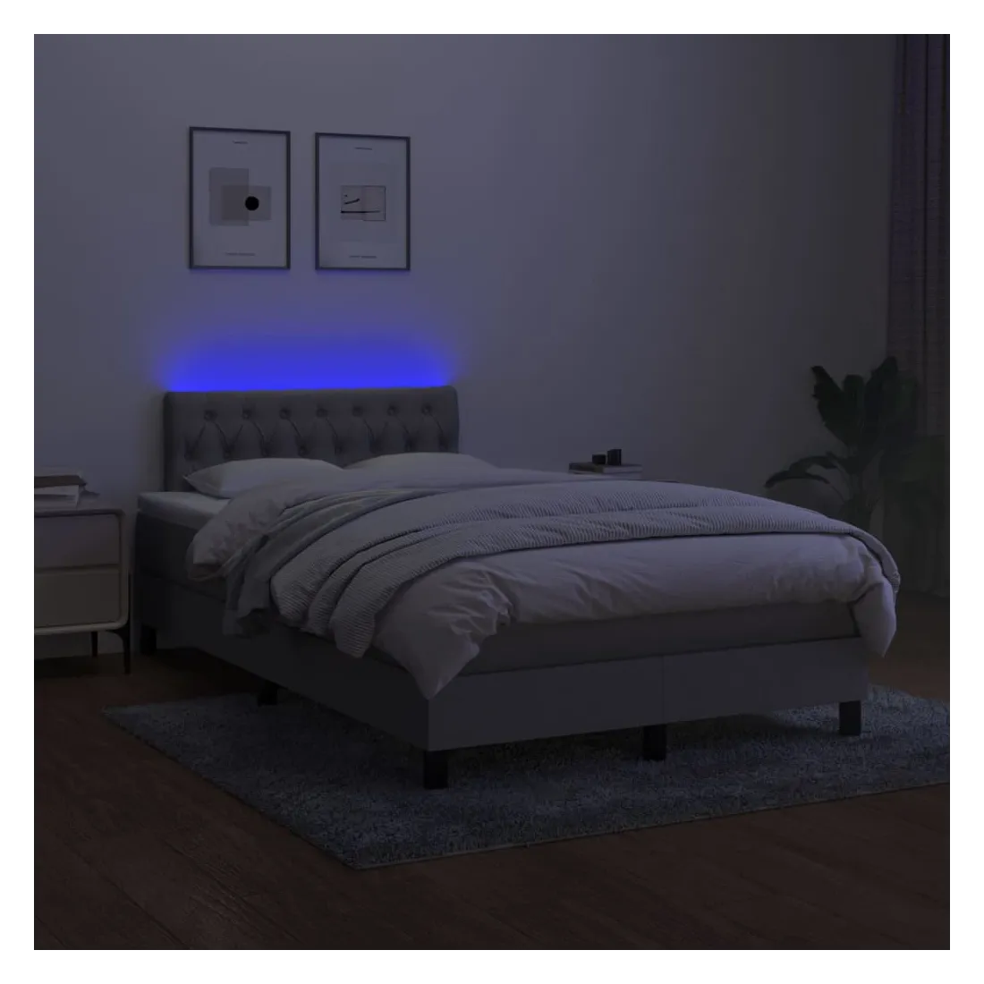 Utilisez ce sommier tapissier avec matelas et LED pour profiter d'un sommeil réparateur ! C'est le point central de votre chambre à coucher. Tissu durable : le tissu présente un aspect simple et épuré, et il est respirant et durable.Tête de lit pratique : la tête de lit est réglable en hauteur selon vos préférences. La tête de lit vous offre un excellent soutien du dos lorsque vous êtes assis dans votre lit pour lire ou regarder la télévision.Bande LED colorée : apportez de l'éclairage dans l'obscurité avec des lumières LED colorées !Matelas à ressorts ensachés : le ressort ensaché individuel intégré est connu pour sa très haute qualité tout en assurant un haut niveau de durabilité et d'adaptabilité. Il peut absorber efficacement le bruit et les chocs causés par les sauts et les rotations.Protège-matelas doux pour la peau : le protège-matelas est recouvert d'un tissu résistant et doux pour la peau, ce qui le rend souple et confortable. Remarque :Pour des raisons d'hygiène, le matelas ne peut pas être retourné si l'emballage est retiré ou ouvert.Chaque produit est livré avec un manuel de montage dans la boîte pour un montage facile.Seule la partie avec un symbole de ciseaux peut être coupée et seule la partie avec l'USB continuera à fonctionner comme avant.Ce produit est doté d'un connecteur USB, mais la source d'alimentation certifiée de USB 5V n'est pas incluse.