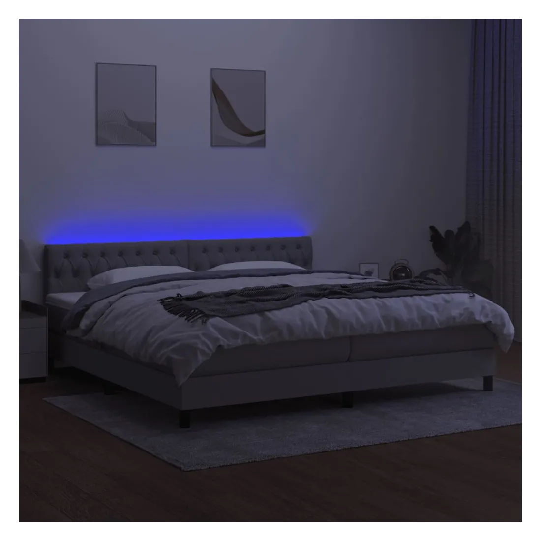 vidaXLUtilisez ce sommier tapissier avec matelas et LED pour profiter d'un sommeil réparateur ! C'est le point central de votre chambre à coucher. Tissu durable : le tissu présente un aspect simple et épuré, et il est respirant et durable.Tête de lit pratique : la tête de lit est réglable en hauteur selon vos préférences. La tête de lit vous offre un excellent soutien du dos lorsque vous êtes assis dans votre lit pour lire ou regarder la télévision.Bande LED colorée : apportez de l'éclairage dans l'obscurité avec des lumières LED colorées !Matelas à ressorts ensachés : le ressort ensaché individuel intégré est connu pour sa très haute qualité tout en assurant un haut niveau de durabilité et d'adaptabilité. Il peut absorber efficacement le bruit et les chocs causés par les sauts et les rotations.Protège-matelas doux pour la peau : le protège-matelas est recouvert d'un tissu résistant et doux pour la peau, ce qui le rend souple et confortable. Remarque :Pour des raisons d'hygiène, le matelas ne peut pas être retourné si l'emballage est retiré ou ouvert.Chaque produit est livré avec un manuel de montage dans la boîte pour un montage facile.Seule la partie avec un symbole de ciseaux peut être coupée et seule la partie avec l'USB continuera à fonctionner comme avant.Ce produit est doté d'un connecteur USB, mais la source d'alimentation certifiée de USB 5V n'est pas incluse.