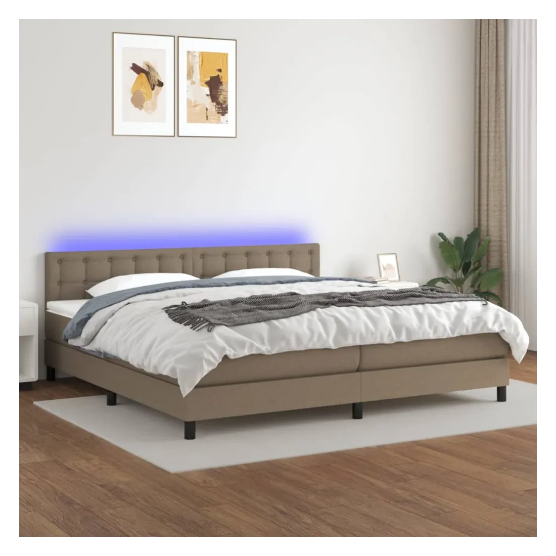 Utilisez ce sommier tapissier avec matelas et LED pour profiter d'un sommeil réparateur ! C'est le point central de votre chambre à coucher. Tissu durable : le tissu présente un aspect simple et épuré, et il est respirant et durable. Tête de lit pratique : la tête de lit est réglable en hauteur selon vos préférences. La tête de lit vous offre un excellent soutien du dos lorsque vous êtes assis dans votre lit pour lire ou regarder la télévision. Bande LED colorée : apportez de l'éclairage dans l'obscurité avec des lumières LED colorées ! Matelas à ressorts ensachés : le ressort ensaché individuel intégré est connu pour sa très haute qualité tout en assurant un haut niveau de durabilité et d'adaptabilité. Il peut absorber efficacement le bruit et les chocs causés par les sauts et les rot