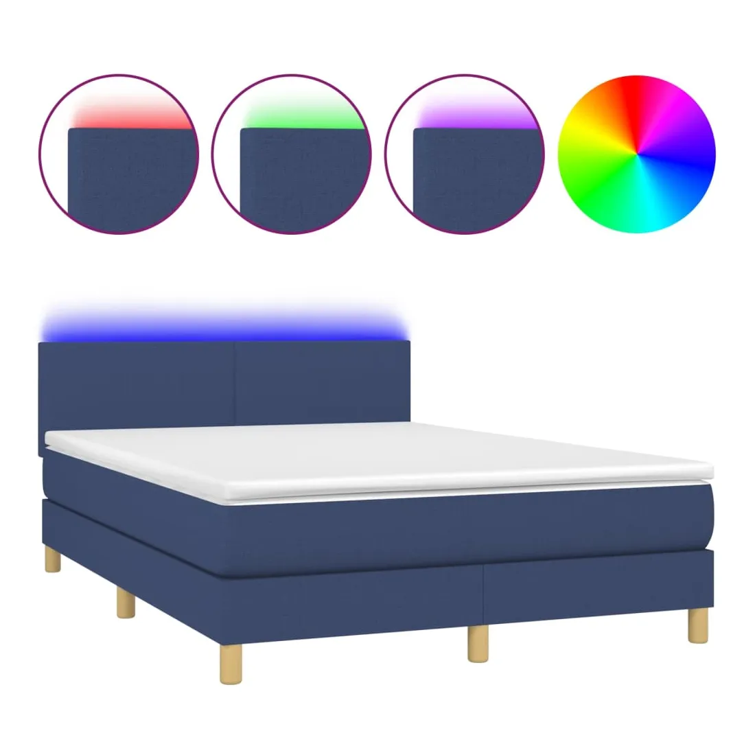 Sommier à lattes de lit avec matelas LED Bleu 140x200 cm Tissu