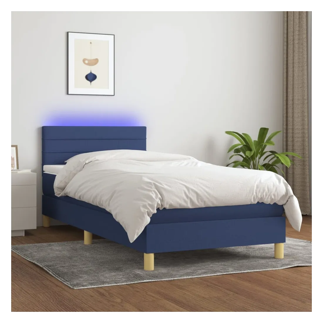 Sommier à lattes de lit avec matelas et LED Bleu 90x200cm Tissu