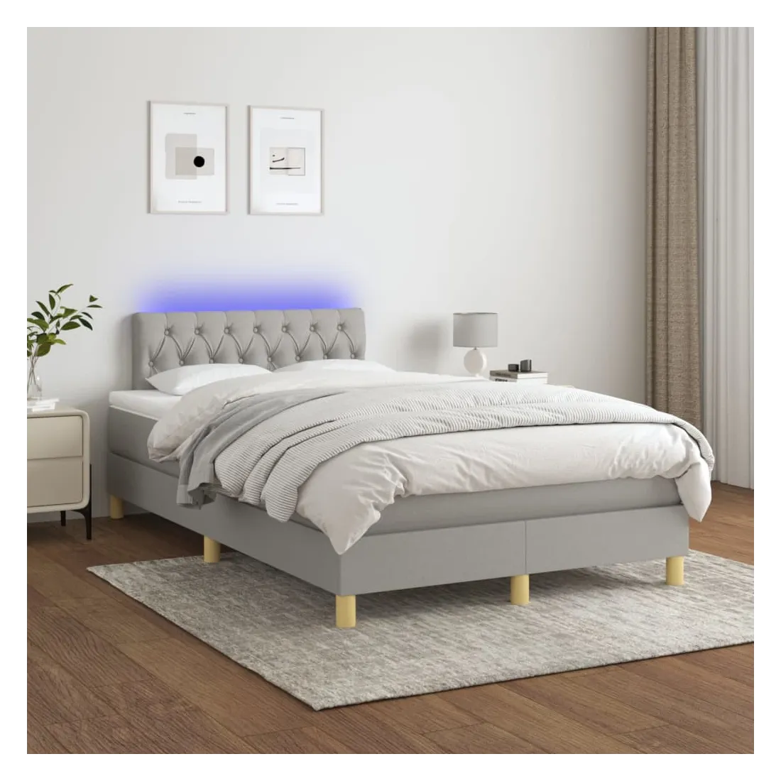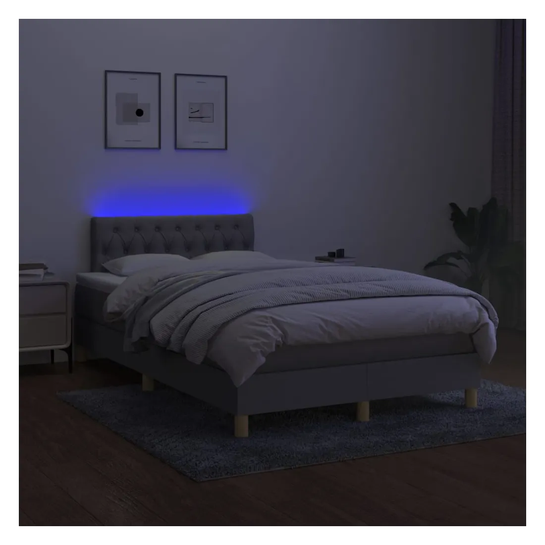Utilisez ce sommier tapissier avec matelas et LED pour profiter d'un sommeil réparateur ! C'est le point central de votre chambre à coucher. Tissu durable : le tissu présente un aspect simple et épuré, et il est respirant et durable. Tête de lit pratique : la tête de lit est réglable en hauteur selon vos préférences. La tête de lit vous offre un excellent soutien du dos lorsque vous êtes assis dans votre lit pour lire ou regarder la télévision. Bande LED colorée : apportez de l'éclairage dans l'obscurité avec des lumières LED colorées ! Matelas à ressorts ensachés : le ressort ensaché individuel intégré est connu pour sa très haute qualité tout en assurant un haut niveau de durabilité et d'adaptabilité. Il peut absorber efficacement le bruit et les chocs causés par les sauts et les rot