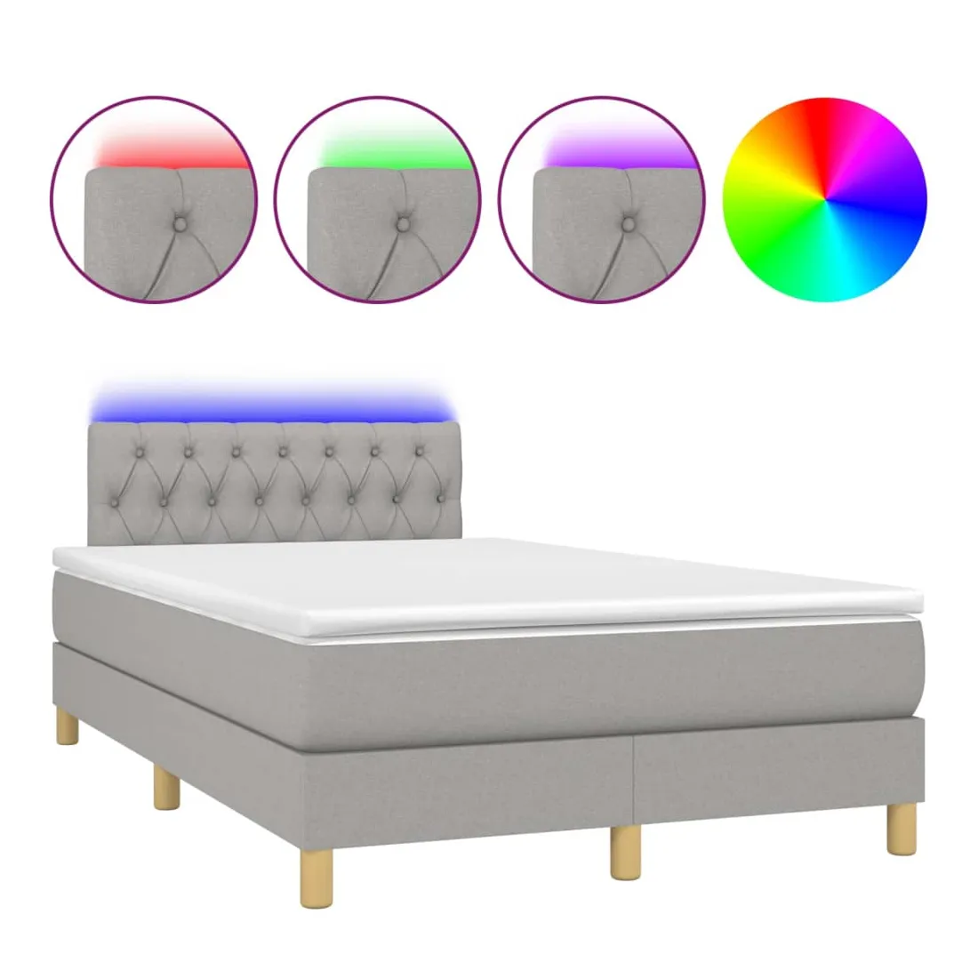 Utilisez ce sommier tapissier avec matelas et LED pour profiter d'un sommeil réparateur ! C'est le point central de votre chambre à coucher. Tissu durable : le tissu présente un aspect simple et épuré, et il est respirant et durable.Tête de lit pratique : la tête de lit est réglable en hauteur selon vos préférences. La tête de lit vous offre un excellent soutien du dos lorsque vous êtes assis dans votre lit pour lire ou regarder la télévision.Bande LED colorée : apportez de l'éclairage dans l'obscurité avec des lumières LED colorées !Matelas à ressorts ensachés : le ressort ensaché individuel intégré est connu pour sa très haute qualité tout en assurant un haut niveau de durabilité et d'adaptabilité. Il peut absorber efficacement le bruit et les chocs causés par les sauts et les rotations.Protège-matelas doux pour la peau : le protège-matelas est recouvert d'un tissu résistant et doux pour la peau, ce qui le rend souple et confortable. Remarque :Pour des raisons d'hygiène, le matelas ne peut pas être retourné si l'emballage est retiré ou ouvert.Chaque produit est livré avec un manuel de montage dans la boîte pour un montage facile.Seule la partie avec un symbole de ciseaux peut être coupée et seule la partie avec l'USB continuera à fonctionner comme avant.Ce produit est doté d'un connecteur USB, mais la source d'alimentation certifiée de USB 5V n'est pas incluse.