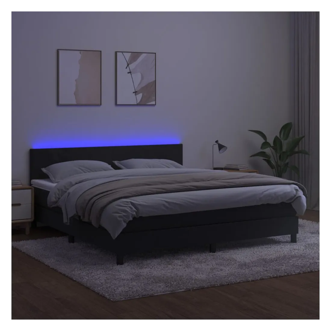 Sommier à lattes de lit avec matelas LED Noir 180x200cm Velours