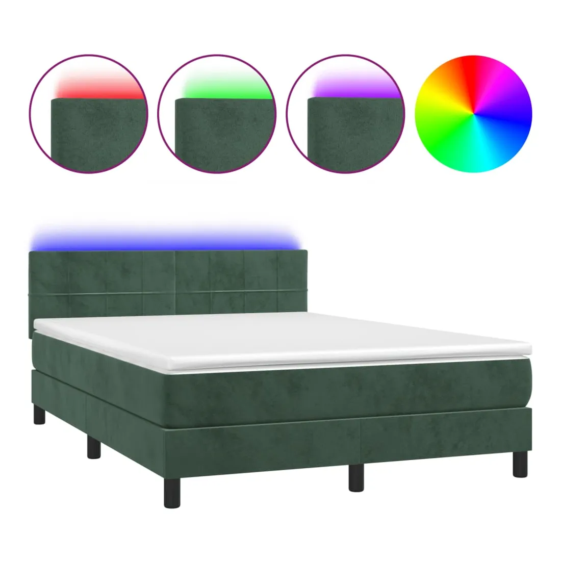 Sommier à lattes de lit avec matelas LED Vert foncé 140x190 cm