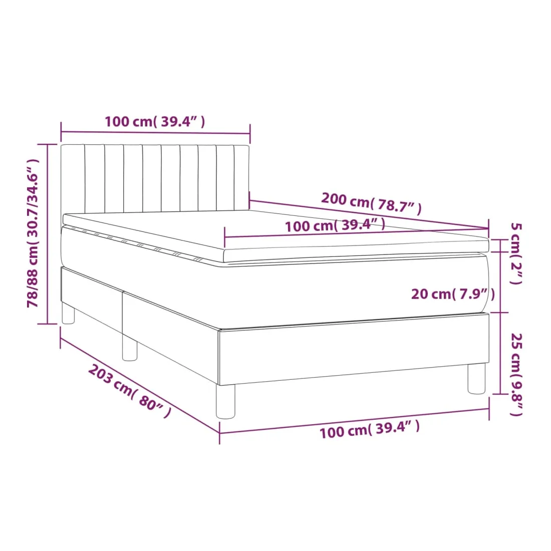Sommier à lattes de lit avec matelas LED Gris foncé 100x200 cm
