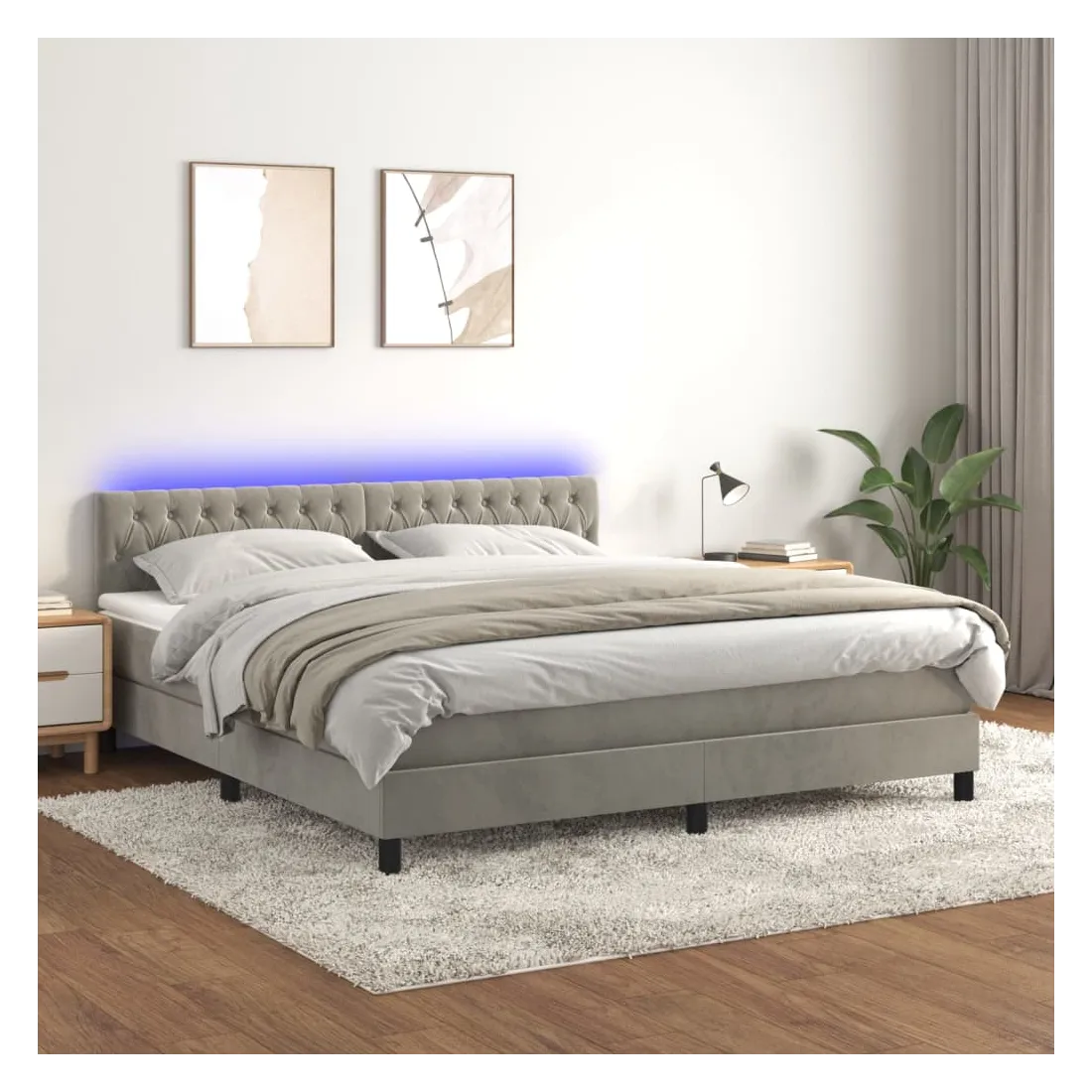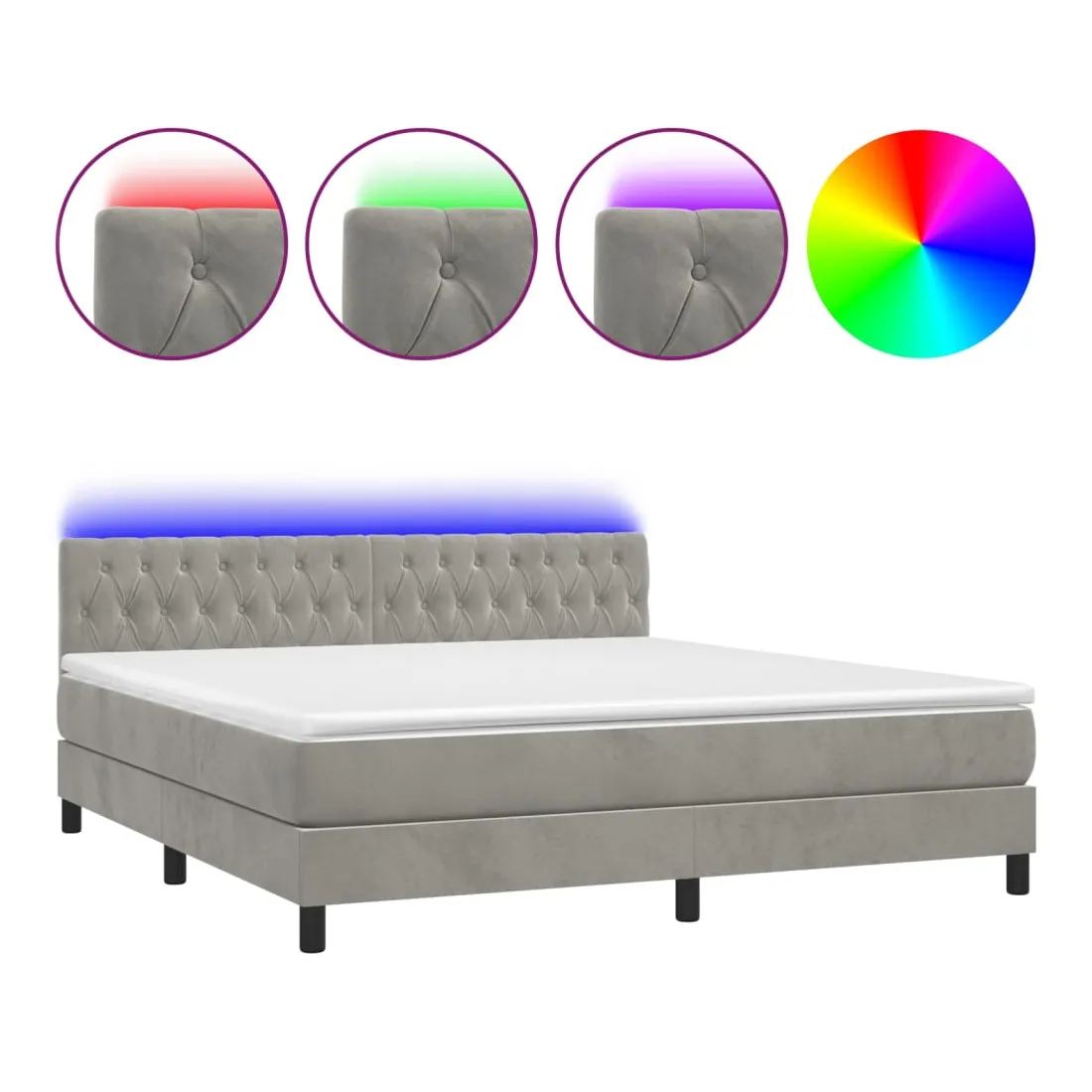 vidaXLUtilisez ce sommier tapissier avec matelas et LED pour profiter d'un sommeil réparateur ! C'est le point central de votre chambre à coucher. Velours doux : le velours est un tissu doux et luxueux qui se reconnaît à son tas dense de fibres uniformément coupées qui ont une touche lisse. Le tissu en velours présente un toucher doux distinctif, ce qui le rend confortable au toucher.Tête de lit pratique : la tête de lit est réglable en hauteur selon vos préférences. La tête de lit vous offre un excellent soutien du dos lorsque vous êtes assis dans votre lit pour lire ou regarder la télévision.Bande LED colorée : apportez de l'éclairage dans l'obscurité avec des lumières LED colorées !Matelas à ressorts ensachés : le ressort ensaché individuel intégré est connu pour sa très haute qualité tout en assurant un haut niveau de durabilité et d'adaptabilité. Il peut absorber efficacement le bruit et les chocs causés par les sauts et les rotations.Protège-matelas doux pour la peau : le protège-matelas est recouvert d'un tissu résistant et doux pour la peau, ce qui le rend souple et confortable. Remarque :Pour des raisons d'hygiène, le matelas ne peut pas être retourné si l'emballage est retiré ou ouvert.Chaque produit est livré avec un manuel de montage dans la boîte pour un montage facile.Seule la partie avec un symbole de ciseaux peut être coupée et seule la partie avec l'USB continuera à fonctionner comme avant.Ce produit est doté d'un connecteur USB, mais la source d'alimentation certifiée de USB 5V n'est pas incluse.